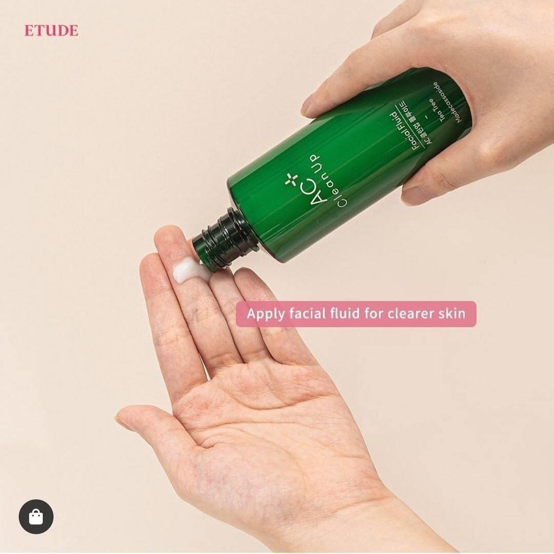 Sữa Dưỡng Etude House AC Clean Up Facial Fluid chiết xuất tràm trà, vỏ cây liễu trắng và rau má giúp cân bằng da.