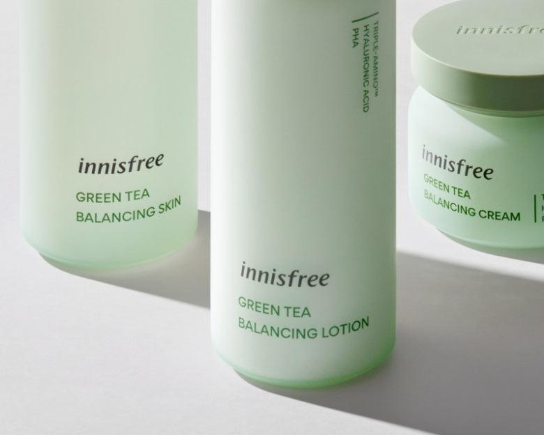 Một trong những sản phẩm nổi bật nhất của Innisfree là Nước tẩy trang trà xanh – được chiết xuất từ trà xanh tươi nguyên chất của Jeju, giúp làm sạch sâu mà vẫn duy trì độ ẩm cho làn da. Cùng với đó, bộ sản phẩm dưỡng da trà xanh của Innisfree như Sữa dưỡng da trà xanh hay Kem dưỡng da trà xanh mang đến hiệu quả tuyệt vời trong việc cấp ẩm và làm dịu da, đồng thời bảo vệ da khỏi các tác hại từ môi trường. Sản phẩm này rất được ưa chuộng bởi tính năng làm sáng da và kiểm soát dầu nhờn, thích hợp cho những người có làn da dầu hoặc da mụn.