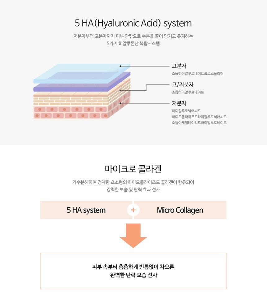 Chứa axit hyaluronic trọng lượng phân tử thấp và collagen siêu nhỏ mang lại hiệu quả giữ ẩm và đàn hồi mạnh mẽ.