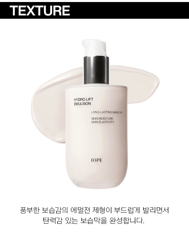 Công thức Sữa Dưỡng IOPE Hydro Lift Emulsion với cảm giác dưỡng ẩm phong phú được áp dụng nhẹ nhàng để hoàn thành một lớp màng dưỡng ẩm đàn hồi