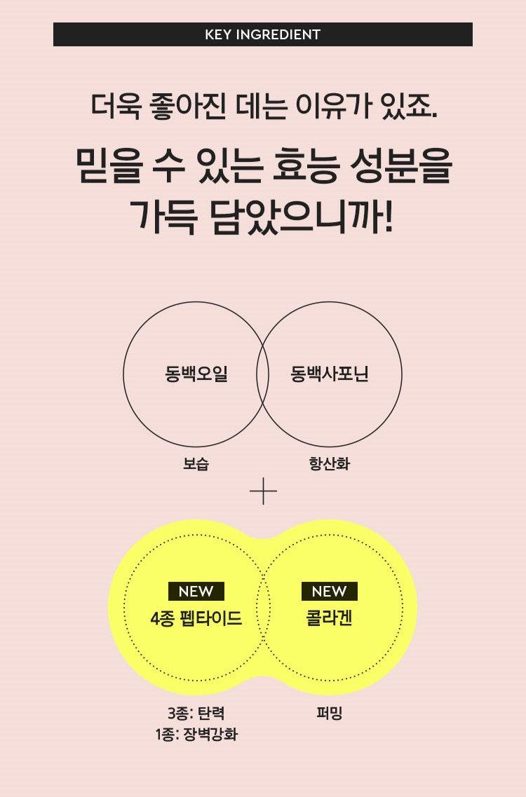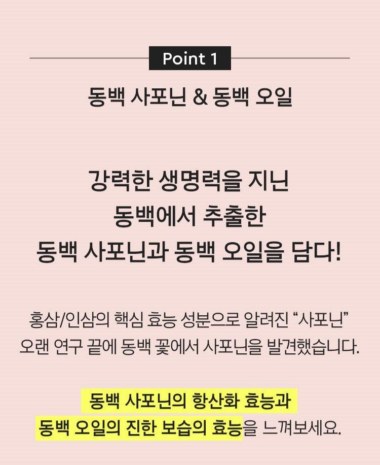 Chứa saponin hoa trà và dầu hoa trà chiết xuất từ hoa trà với sức sống mạnh mẽ. Saponin được biết đến là thành phần hữu hiệu cốt lõi của hồng sâm và nhân sâm. Sau thời gian dài nghiên cứu, Mamonde đã phát hiện ra saponin trong hoa trà có tác dụng chống oxy hóa của saponin hoa trà và dưỡng ẩm sâu.
