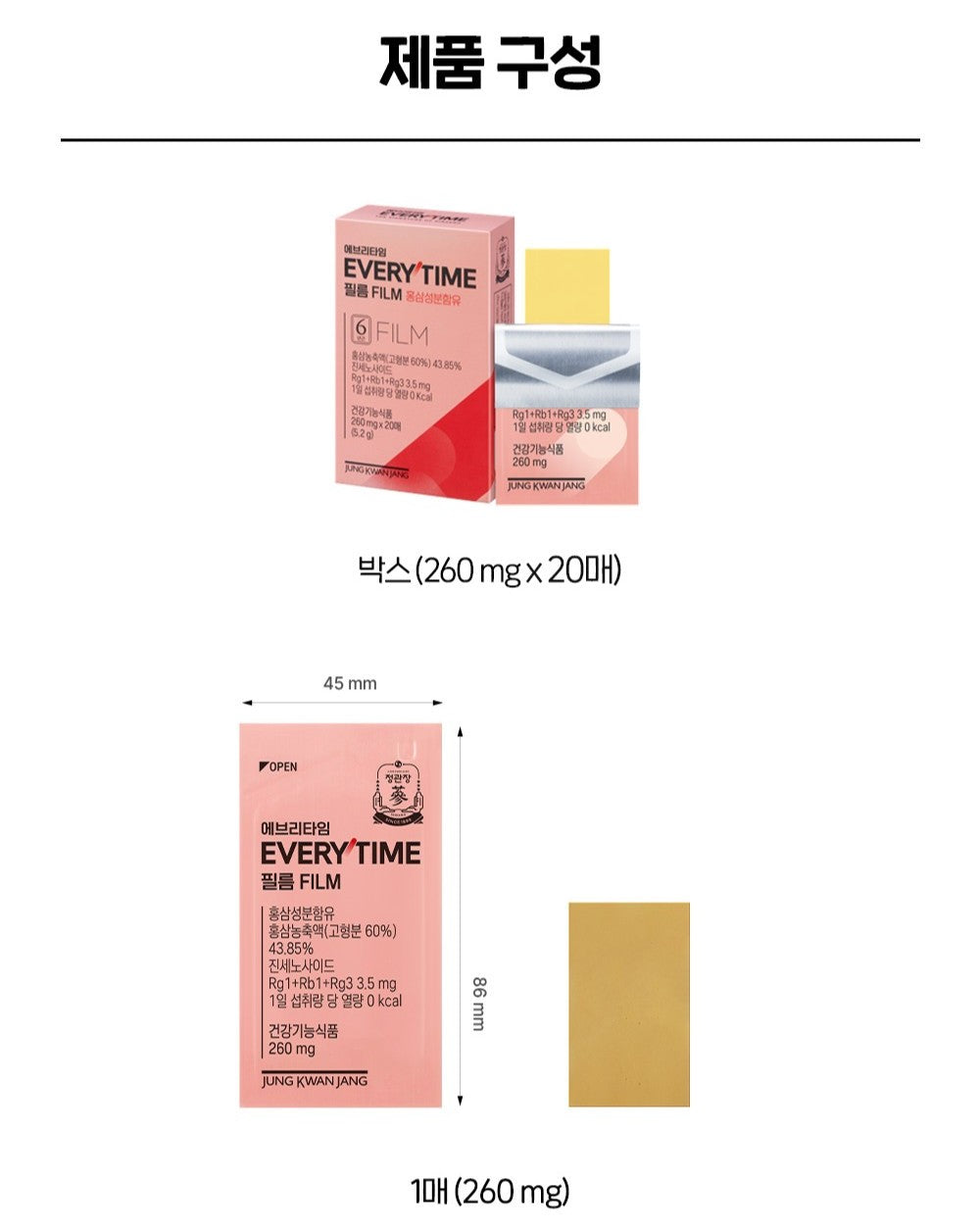 Thành phần và hàm lượng của KGC Jung Kwan Jang Everytime Film