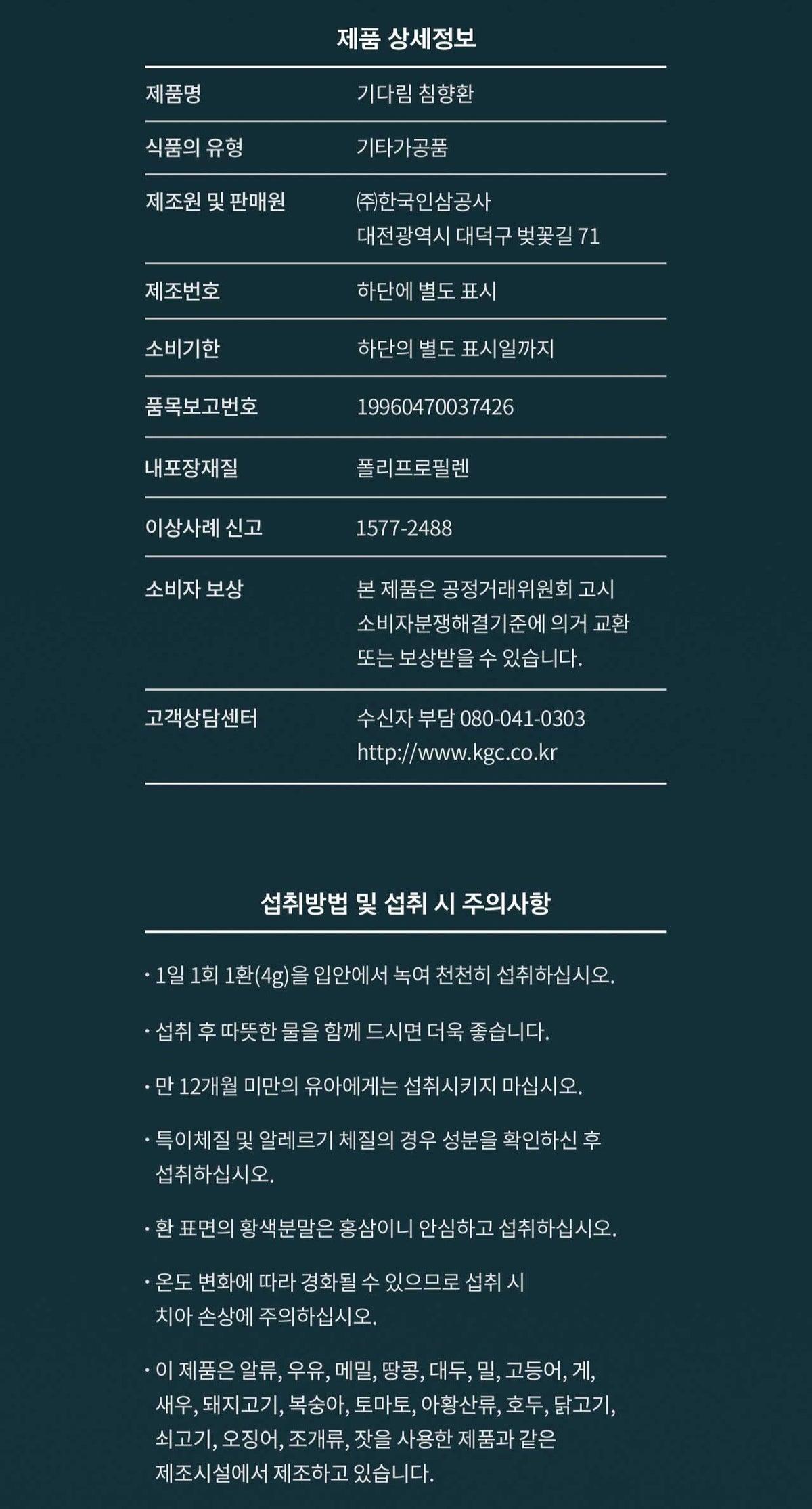 KGC Jung Kwan Jang Gidarim Agarwood Pill #15 Days (기다림 침향환 4g*15환) là sản phẩm đến từ dòng Gi:Dallim (기:다림) – dòng sản phẩm siêu cao cấp của Jung Kwan Jang, tập trung vào các nguyên liệu quý hiếm, hiếm có trong tự nhiên.