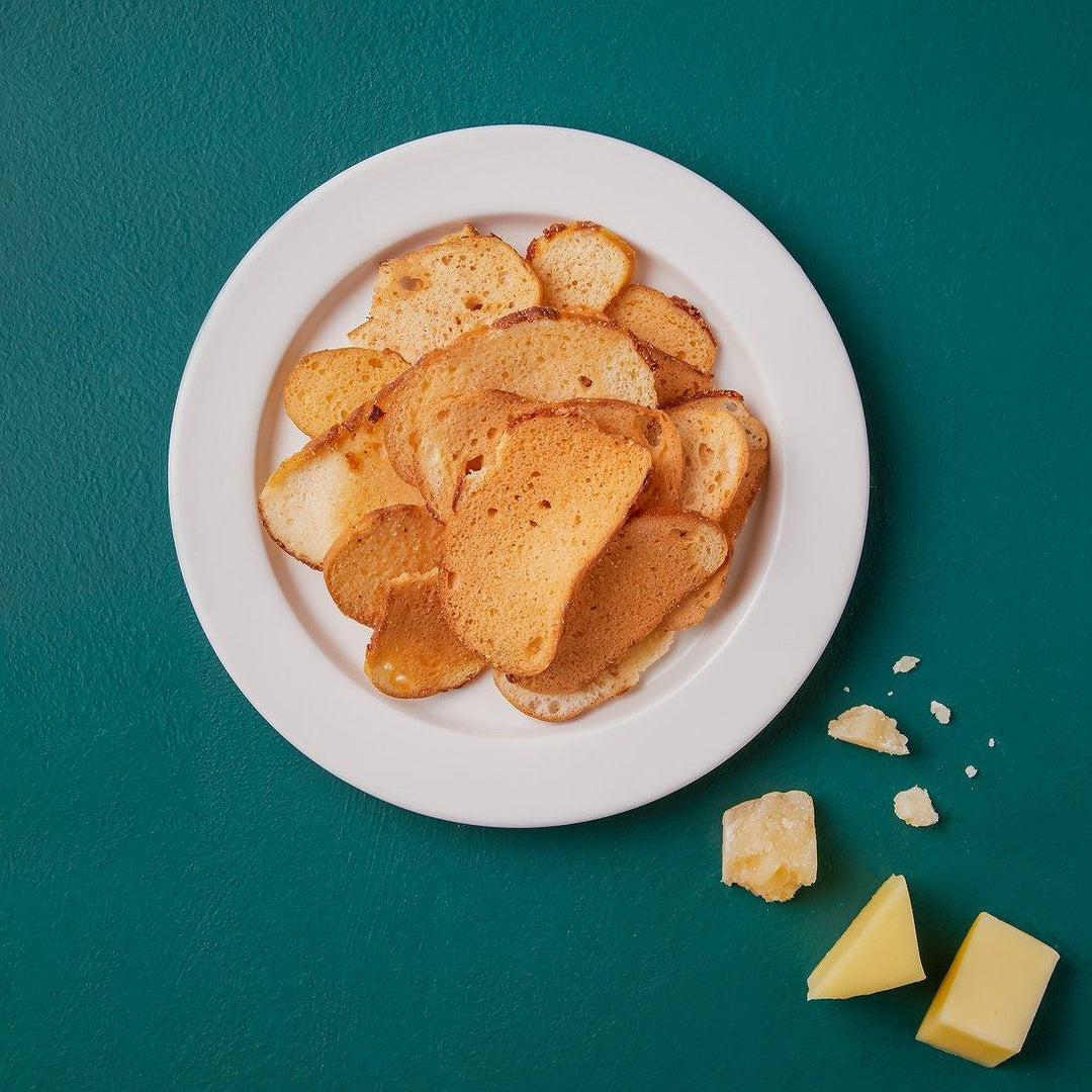 Bánh Starbucks Double Cheese Bagel Chip với vị giòn, ngọt. Bánh mì nướng với phô mai parmesan và mozzarella được nướng giòn thêm một lần nữa với mật ong.