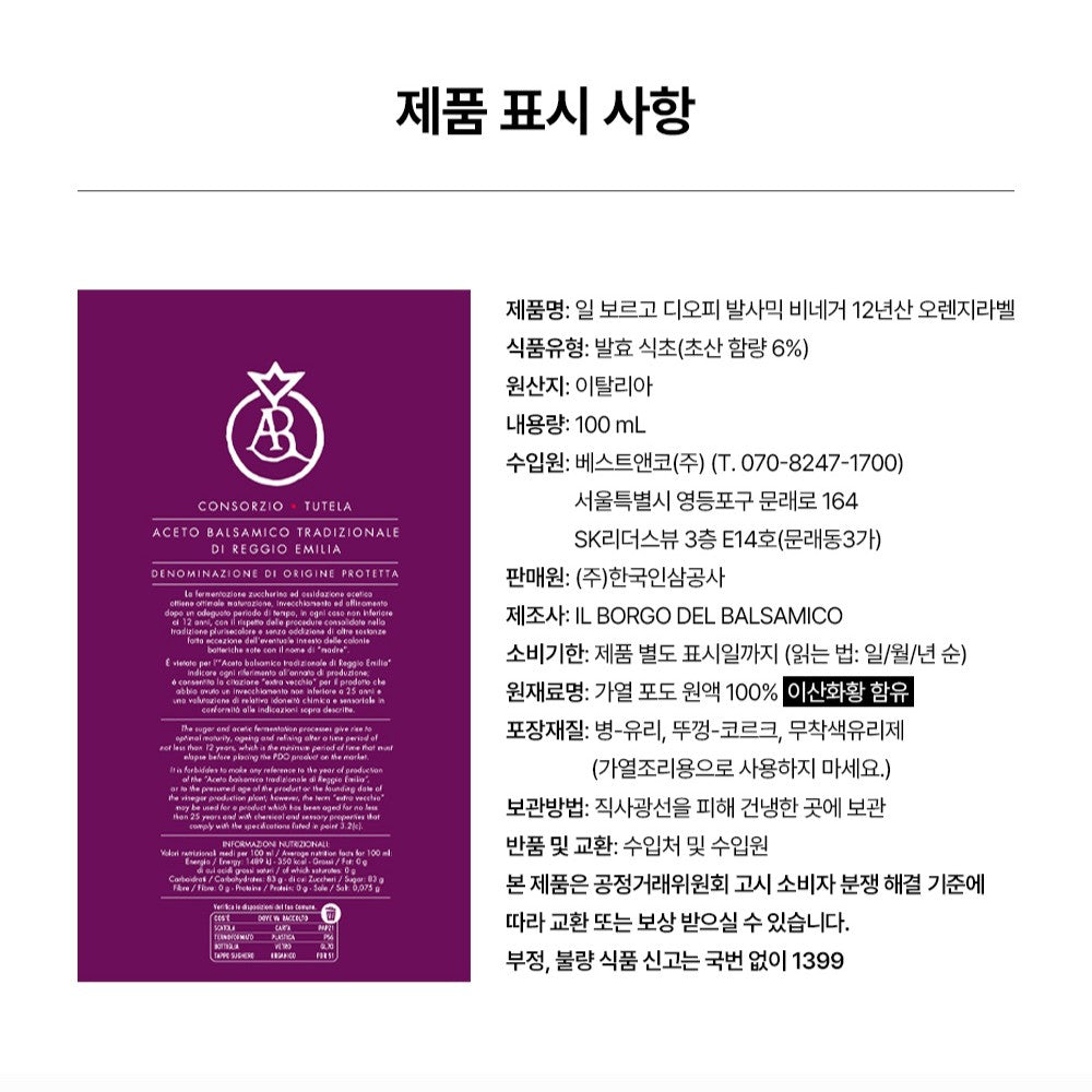 IL Borgo Traditional Balsamic Vinegar DOP #Orange Label là một trong những loại giấm balsamic truyền thống thượng hạng nhất nước Ý, được chứng nhận D.O.P. (Denominazione di Origine Protetta) – tức “Chỉ dẫn xuất xứ được bảo hộ”.
