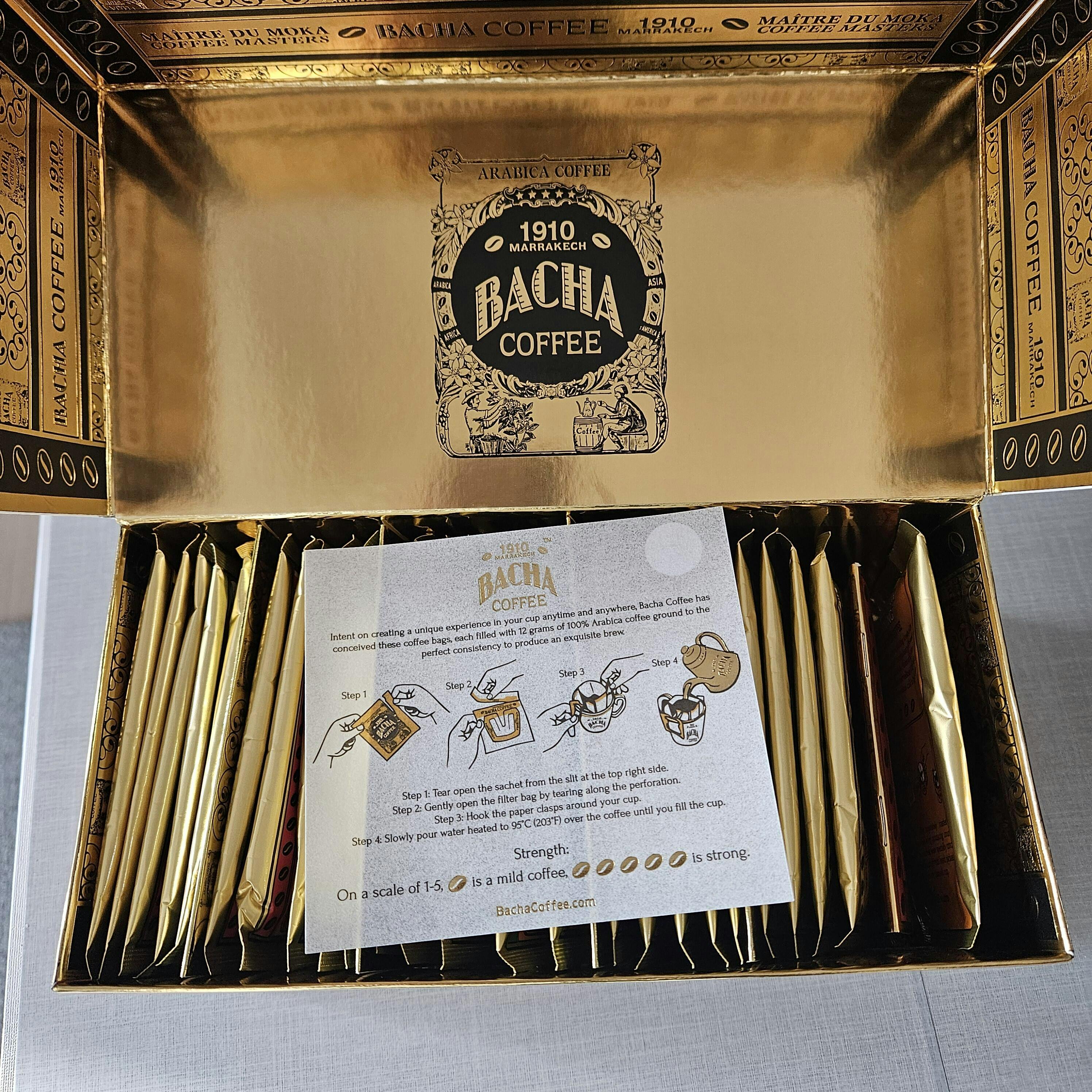 Bacha Coffee là thương hiệu cà phê cao cấp ra đời từ năm 1910 tại Marrakesh, Ma-rốc. Gắn liền với cung điện Dar el Bacha, thương hiệu nhanh chóng trở thành biểu tượng của sự xa xỉ và tinh tế. Với triết lý chỉ phục vụ 100% hạt Arabica tinh tuyển, Bacha Coffee đã chinh phục giới sành cà phê trên toàn cầu.