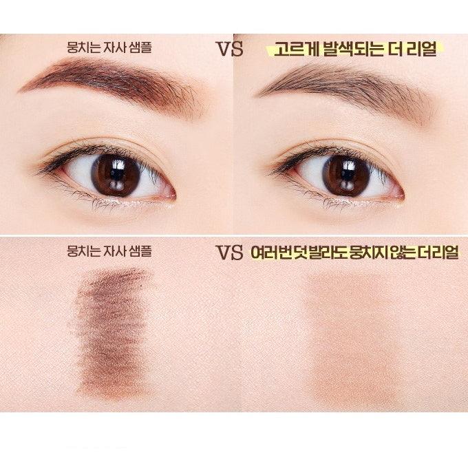 Công thức cứng được đưa vào một cây bút chì tự động để tạo ra những sợi lông mày trông tự nhiên mà không bị vón cục, không bị vón cục ngay cả sau khi thoa lại.