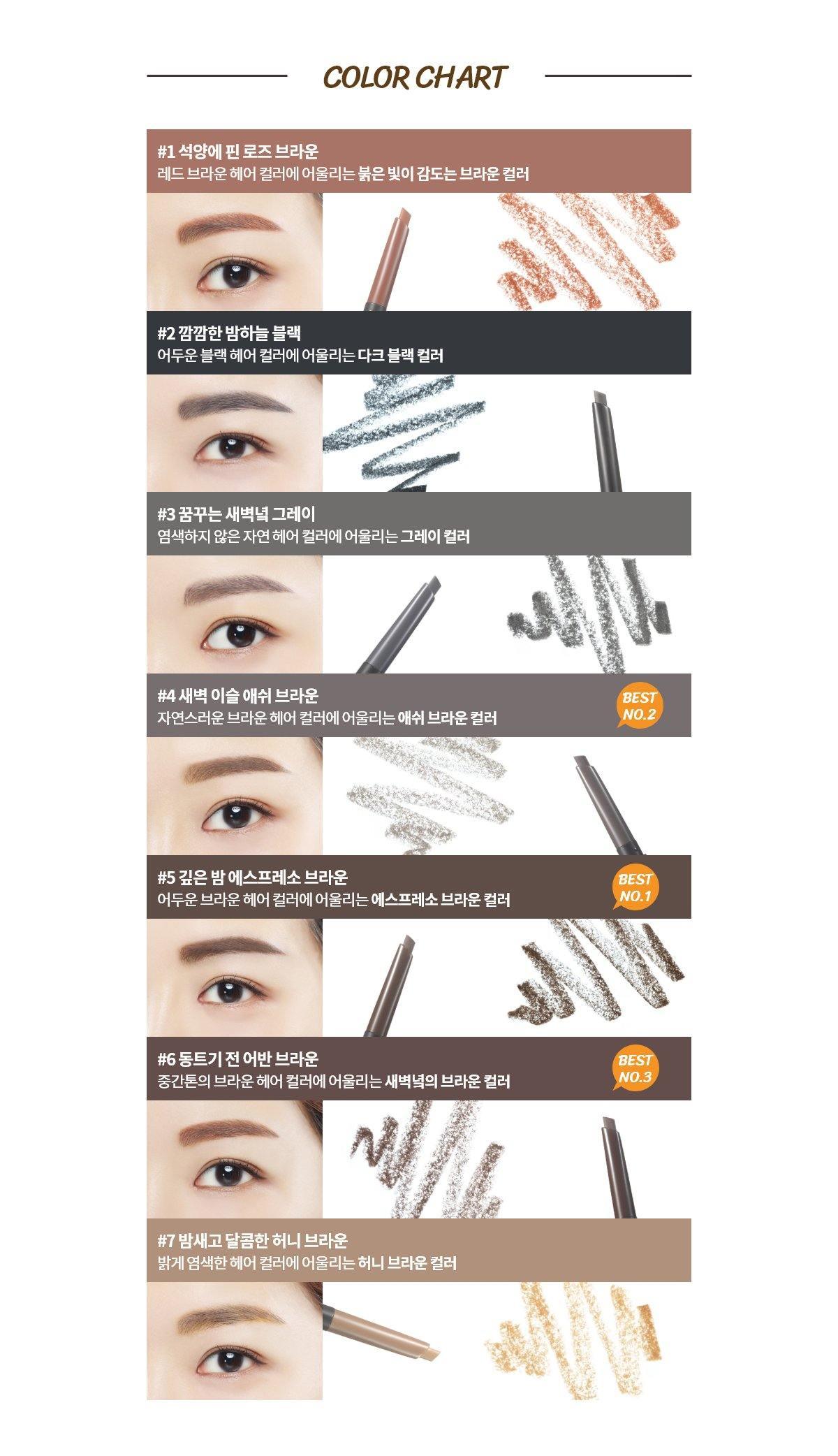 Gồm 2 đầu, một đầu chải giúp chân mày gọn gàng trước khi vẽ. Có 7 màu khác nhau và tiệp với các màu tóc giúp tạo một khuôn mặt tự nhiên hoàn hảo.