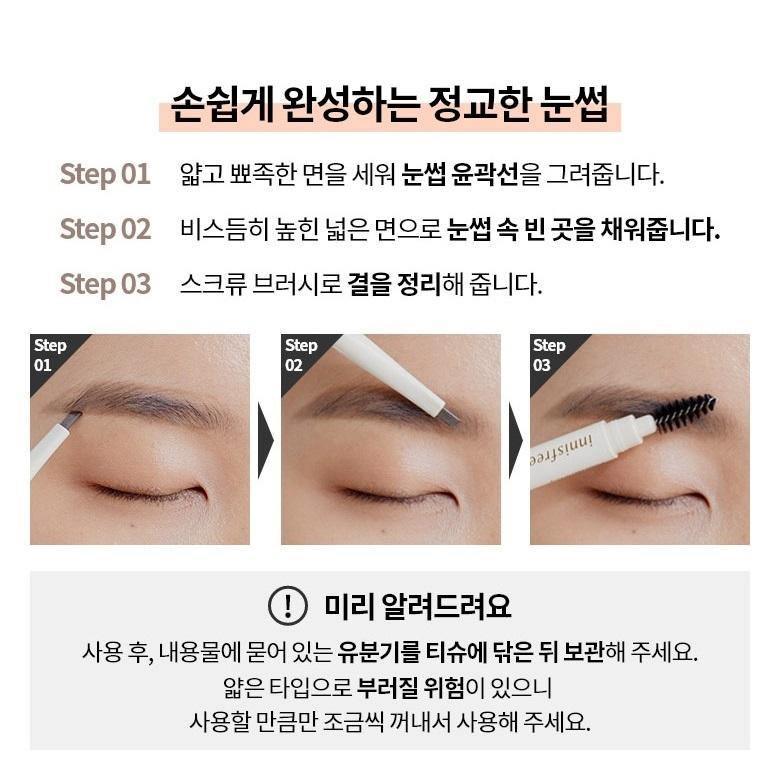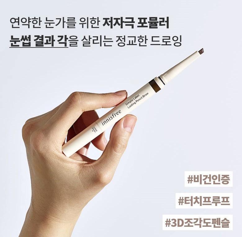 Chì kẻ mày Innisfree Simple Label Lasting Pencil Brow không gây dị ứng cho phép vẽ chính xác các hình dạng điêu khắc 3D.