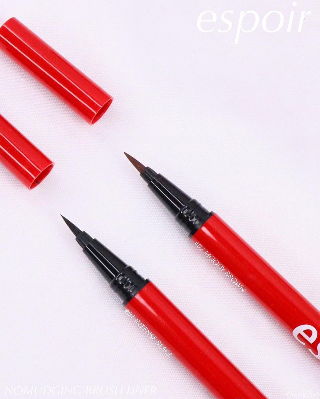 Với sự kết hợp này, ESPOIR Nomudging Brush Liner mang đến lớp kẻ mắt sắc nét, không lem, không trôi ngay cả khi gặp nước hay dầu nhờn trên da.