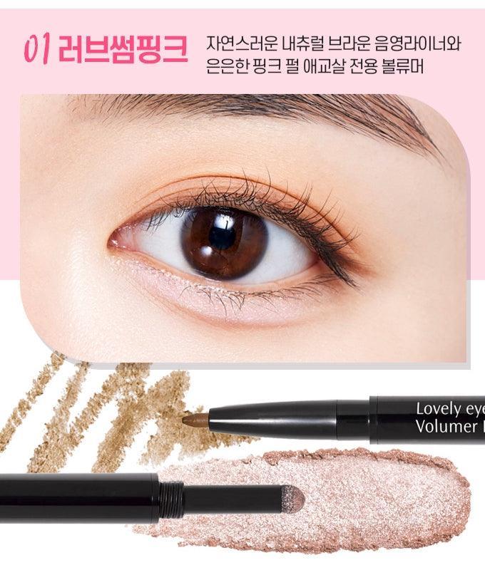 Kẻ Mắt Etude Lovely Eyes Volumer Duo gồm 2 đầu kẻ mắt và nhũ mắt dễ dàng kết hợp và phối các màu với nhau.