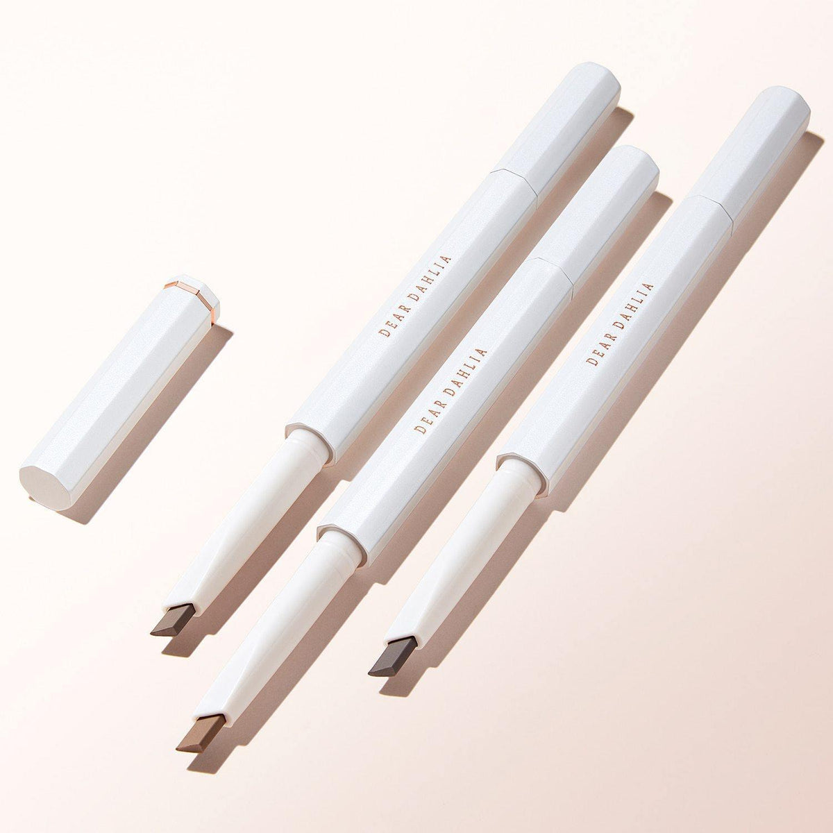 DEAR DAHLIA Perfect Brow Longwear Sculpting Pencil là một cây bút chì kẻ mày cơ học, với đầu bút hình tam giác phẳng giúp bạn dễ dàng điều chỉnh và tạo đường nét chính xác cho lông mày. Đây là điểm nhấn của sản phẩm, bởi vì thiết kế này không chỉ giúp vẽ những đường mày mảnh và tinh tế, mà còn có thể tán đều và điền đầy khoảng trống mà không làm bết dính hay quá dày.