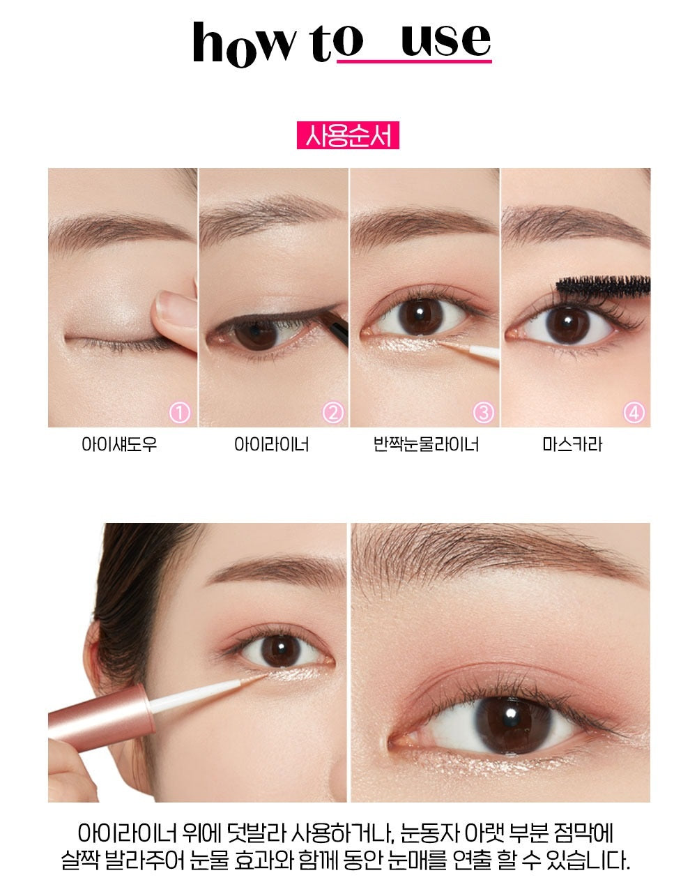 Makeup nhẹ nhàng ban ngày: Chọn màu 1호 hoặc 3호, tán mỏng nhũ để tạo ánh nhìn trong trẻo.