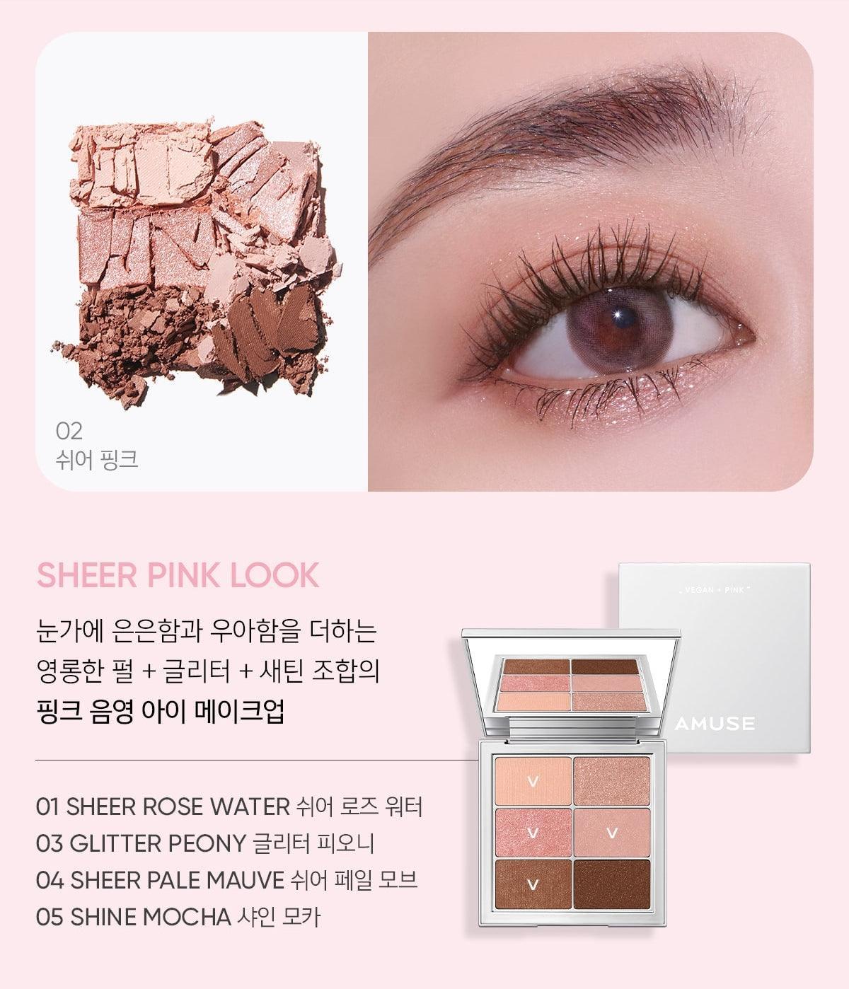 Phấn Mắt Amuse Eye Vegan Sheer Palette là trang điểm thuần chay cho mắt với bảng màu hàng ngày phát triển màu rõ ràng và sự kết hợp màu sắc có thể so sánh với màu sắc.