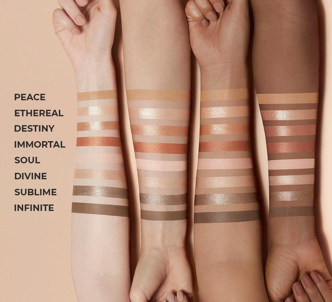 Các kết cấu khác nhau của nhung mờ, ánh nhũ bóng mượt và độ lấp lánh cao mang lại cảm giác màu sắc phong phú chỉ với một lần chạm.