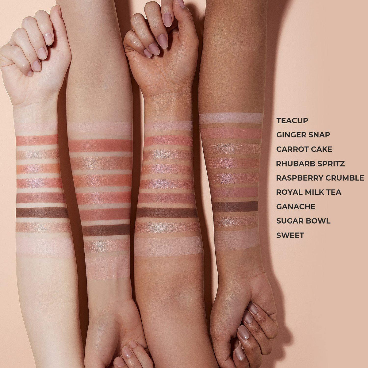 Teacup (Lì): Một sắc thái lì màu hồng be trung tính, mềm mại. Đây là sắc thái chuyển tiếp hoàn hảo cho nếp gấp mí mắt hoặc là màu nền tinh tế cho toàn bộ đôi mắt để bắt đầu bất kỳ kiểu trang điểm nào.