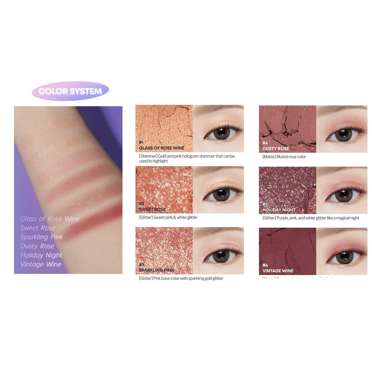 Bảng mắt 6 màu giới hạn với ánh nhũ lấp lánh như rượu vang sủi hồng ngọt ngào