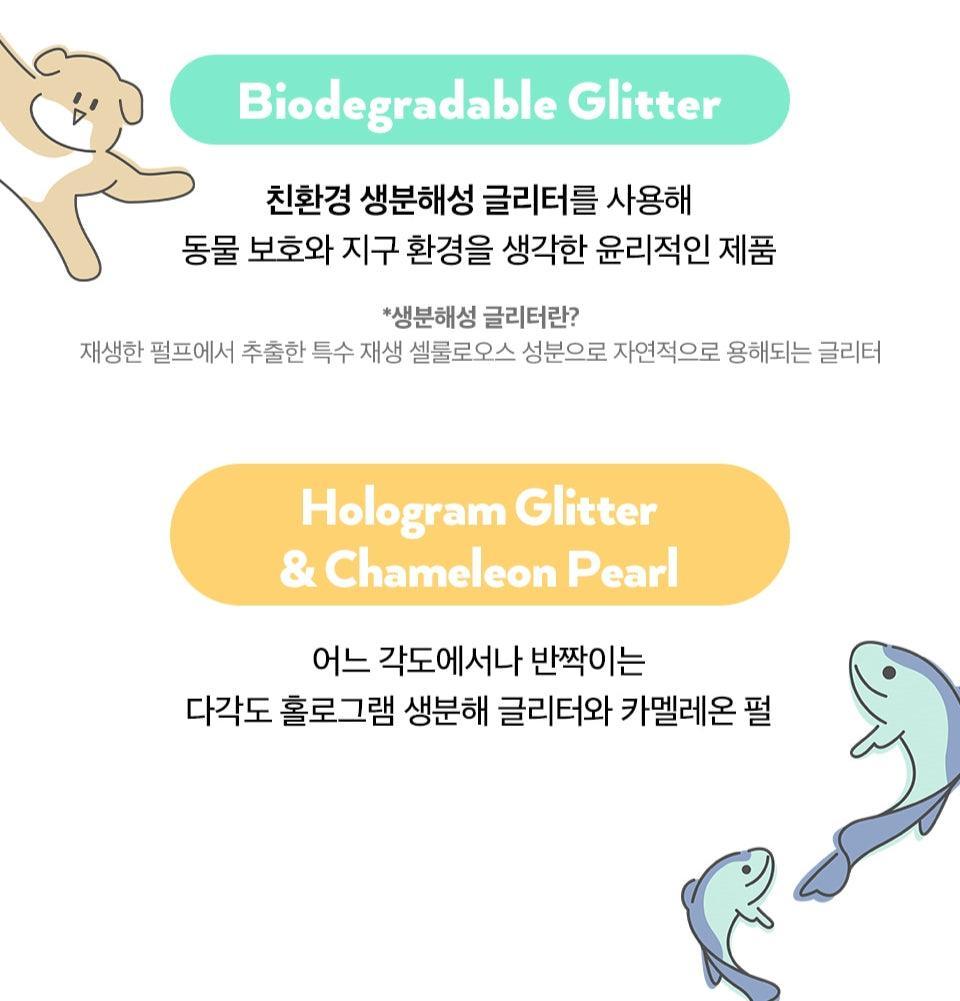 Sản phẩm được sản xuất từ Biodegradable Glitter (Glitter phân hủy sinh học) và với sứ mệnh bảo vệ môi trường và động vật trên hành tinh xanh của chúng ta