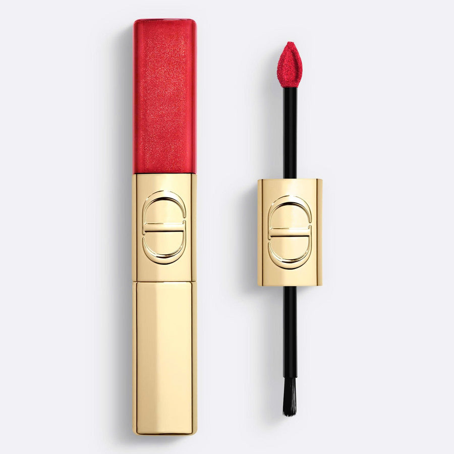 Một đầu chứa son nước lì ánh kim tuyến – đặc trưng của dòng Sequin Liquid – và đầu còn lại là son bóng trong suốt, giúp người dùng dễ dàng biến hóa phong cách chỉ với một sản phẩm duy nhất. Phần nắp vàng ánh kim khắc logo “CD” tinh xảo càng khẳng định đẳng cấp của dòng son giới hạn Dior Holiday 2025.