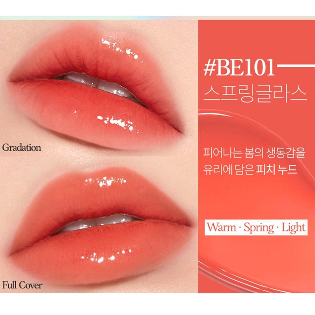 #BE101 Springgrass - Purified water, diphenyldimethicone, diisostearyl maleate, bis-diglyceryl polyacyl adipate-2, octyldodecanol, glycerin, hydrogenated polyisobutene, bis-behenyl / isostearyl / phytosteryl dimer dilinoleyl dimer dilinoleate, cetyl PG / PPG-10/1 dimethicone, dipropylene glycol, sorbitan isostearate, polysorbate 60, Pentylene glycol, 1,2-hexanediol, hydroxyethyl acrylate/sodium acryloyldimethyltaurate copolymer, titanium dioxide (CI 77891), ceteareth-20, phenoxyethanol, squalane, yellow 5 No., Red No. 104 (1), Fragrance, Ethylhexylglycerin, Blue No. 1, Shea Butter, Argan Kernel Oil, Apricot Seed Oil, Olive Oil, Camellia Seed Oil, Jojoba Seed Oil, Evening Primrose Oil, Sweet Almond Oil, Car Prilic/capric triglyceride, mango extract, rosehip fruit extract
