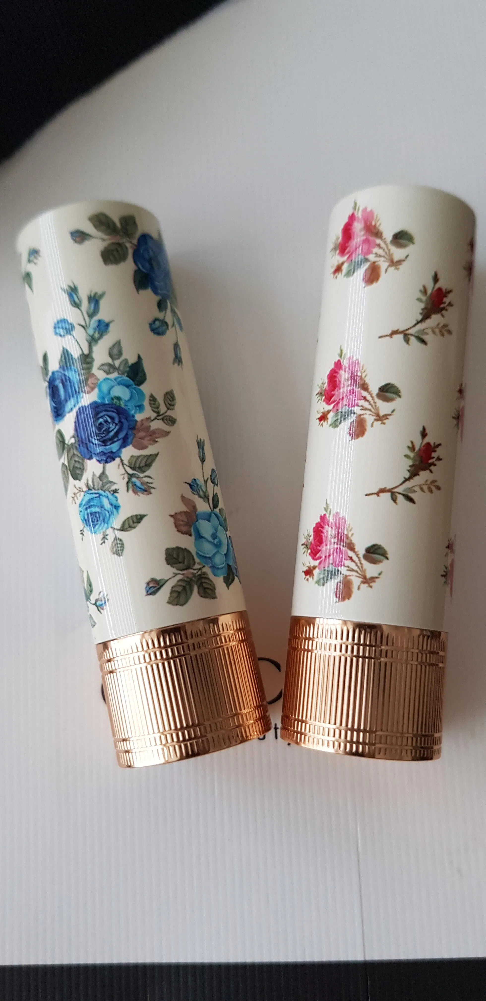 Nắp son phủ lớp sơn hiệu ứng sứ màu ivory, trang trí họa tiết nụ hoa hồng delicately in nổi. Thiết kế lấy cảm hứng từ mỹ phẩm cổ điển thập niên 1950, tạo nên sự khác biệt rõ rệt so với các dòng son hiện đại thông thường.