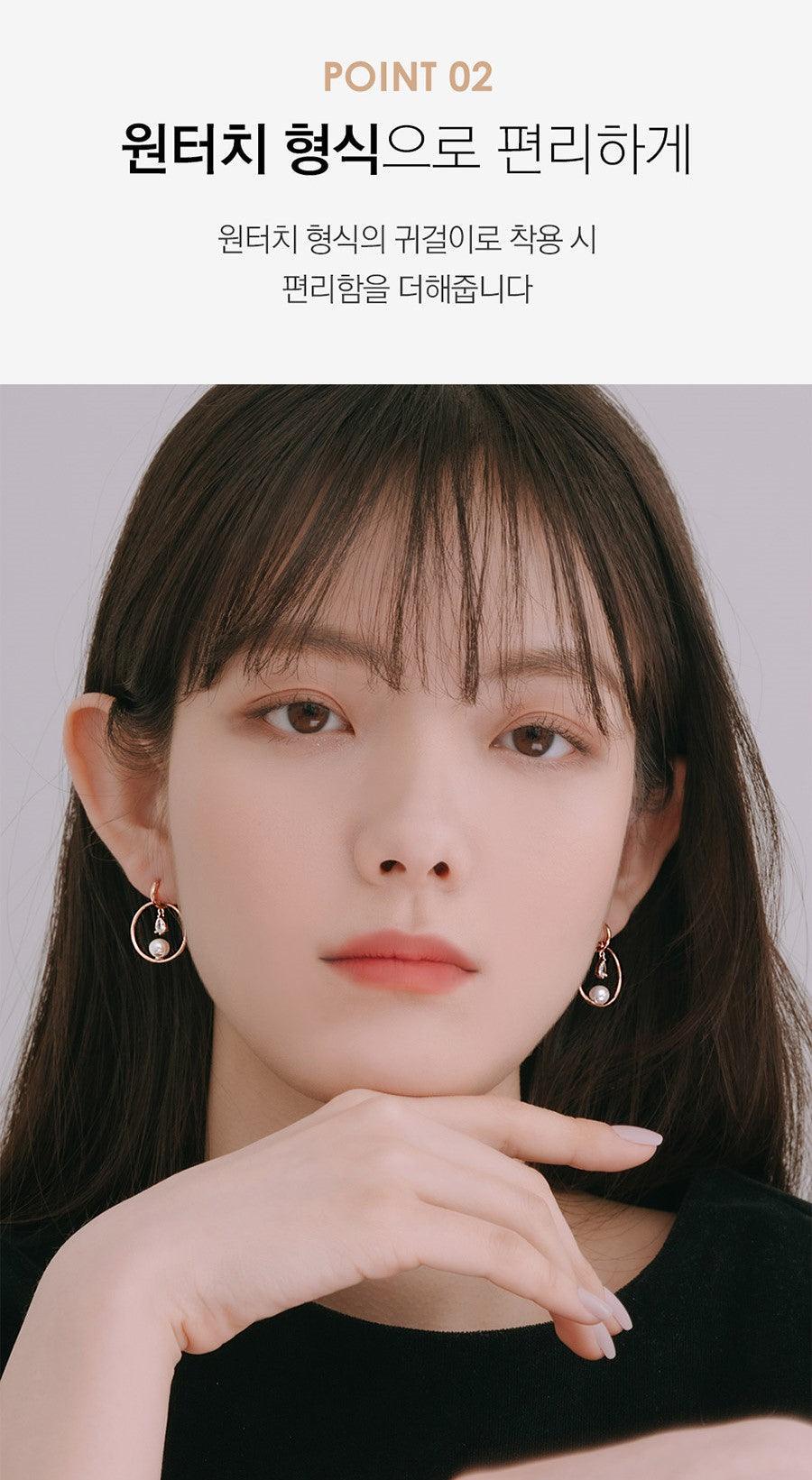 Khi đeo dưới dạng bông tai loại một chạm thêm sự tiện lợi. Màu: Pink, Silver. Chất liệu: Silver saliva, Acrylic pearl, CZ, Hsinchu, Rose gold plating, Platinum plating, etc. Khối lượng: 2.7 Gram. Kích thước: 21 x 27 mm. Số lượng: 2 bông tai.