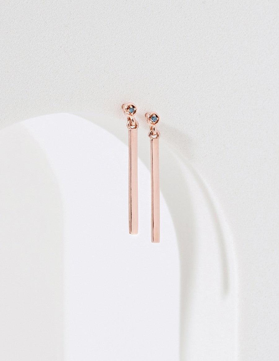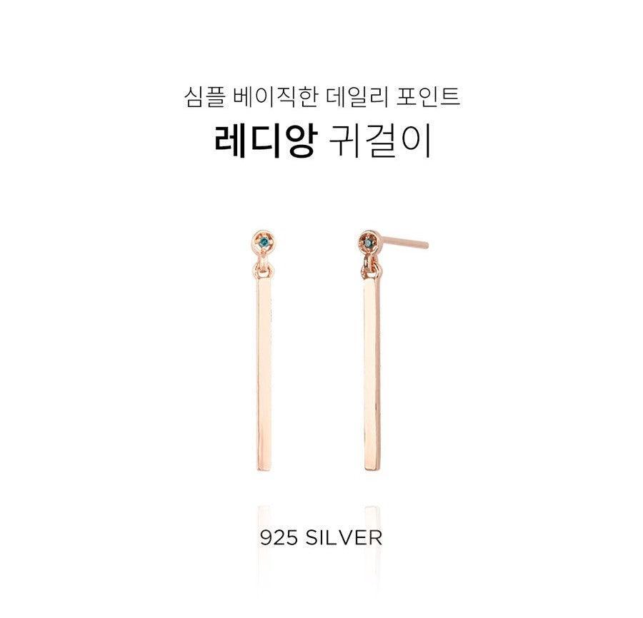 Mạ vàng hồng 14K trên toàn bộ chất liệu bạc 925. Nó kết hợp tốt với mọi tông màu da cũng như tạo cảm giác sang trọng. Màu: Pink. Chất liệu: Silver 925, Blue DIA 1mm, Rose gold plated. Khối lượng: 1.06 Gram. Kích thước: 2.0 x 23.0 mm. Số lượng: 2 bông tai.