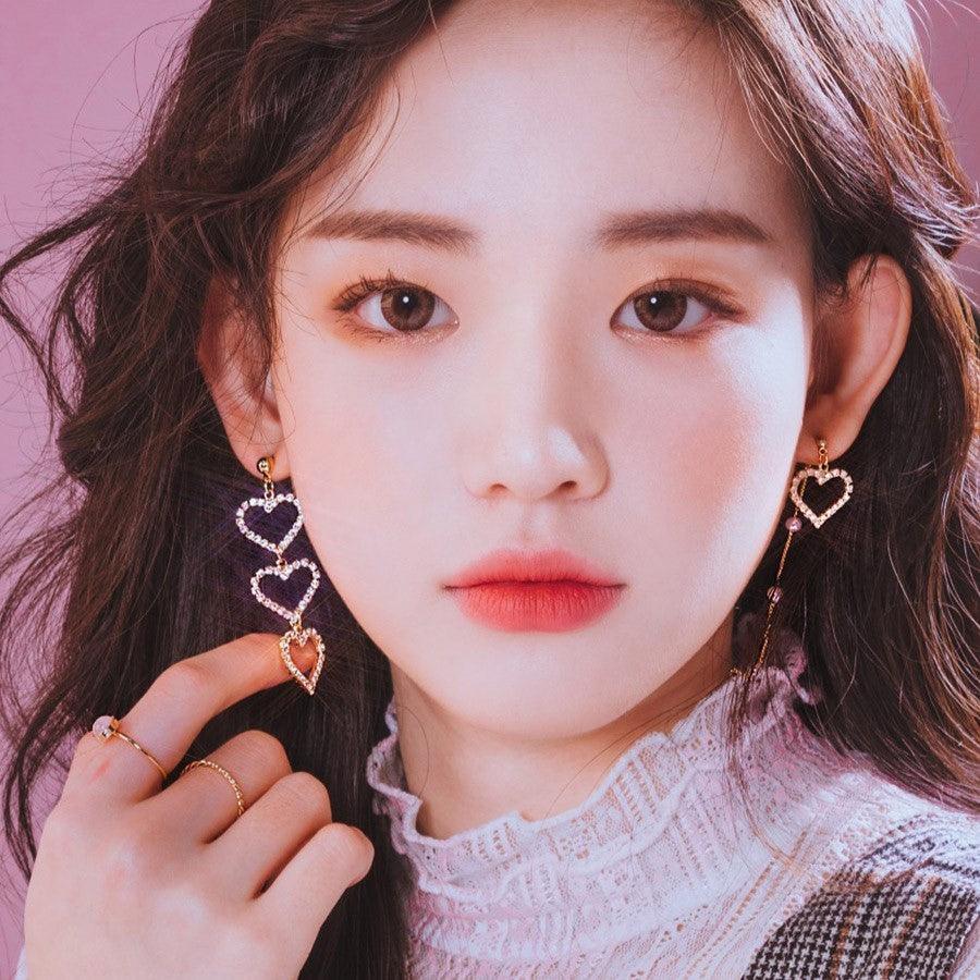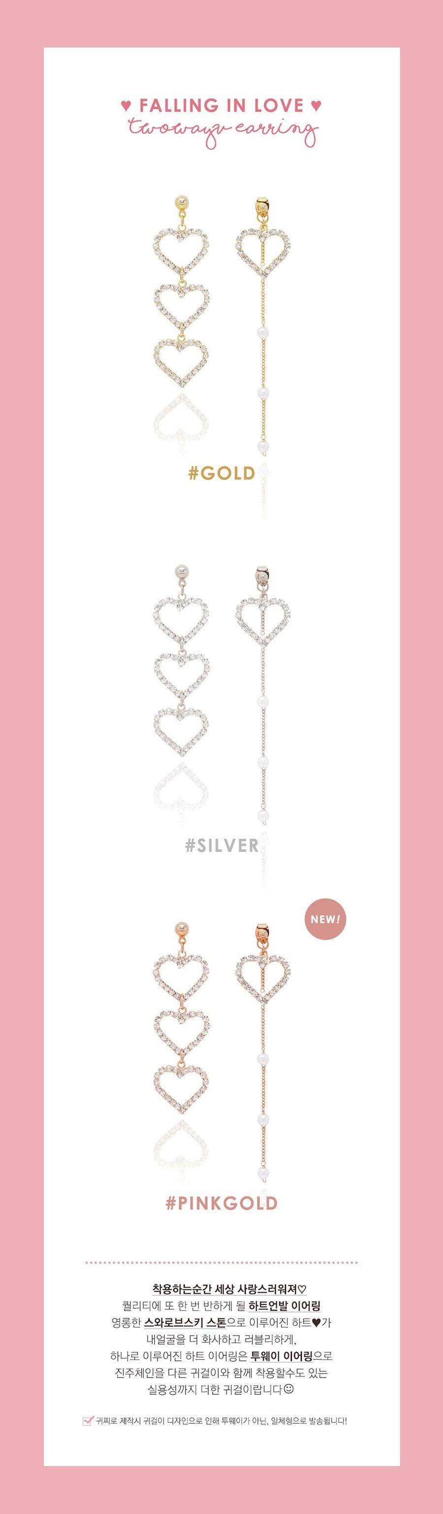 Màu: Gold, Silver, Pinkgold. Chất liệu: 14k Gold plated brass with The titanium post, Swarovski Crystal & Swarovski Pearl. Khối lượng: 2.0 Gram. Kích thước: Triple heart 6.5 cm / Single heart with pearl chain 8.5 cm. Số lượng: 2 bông tai.