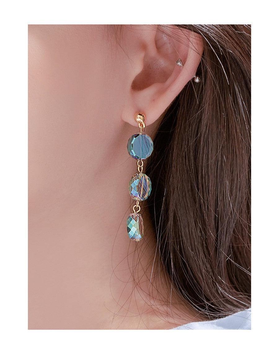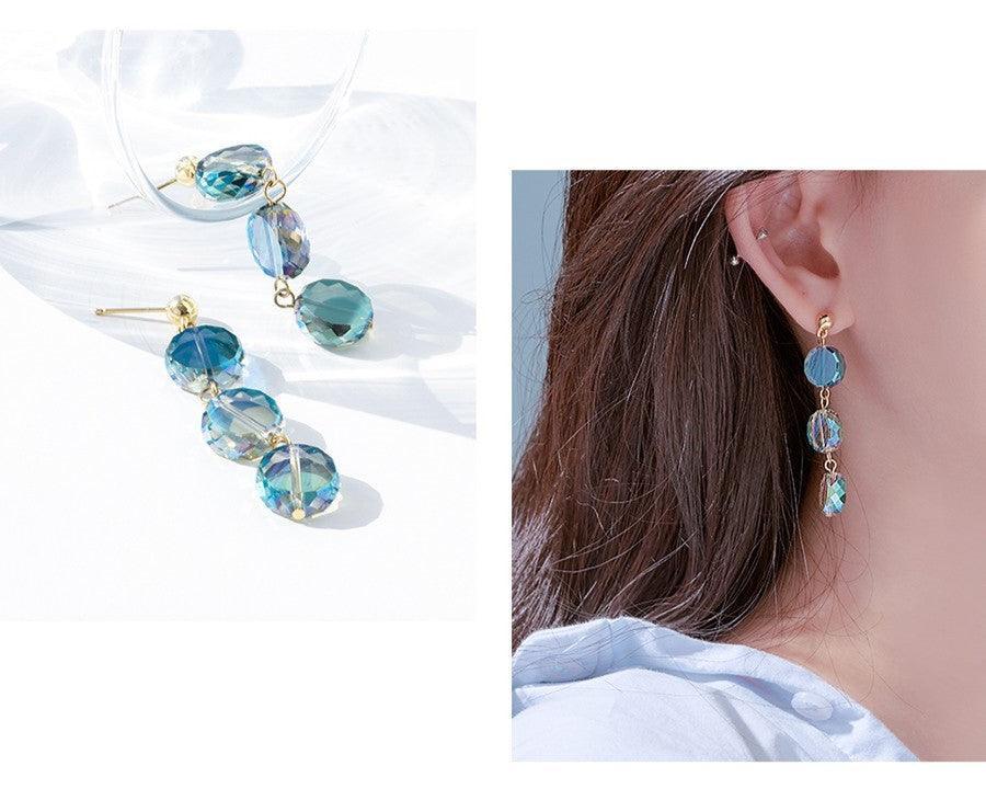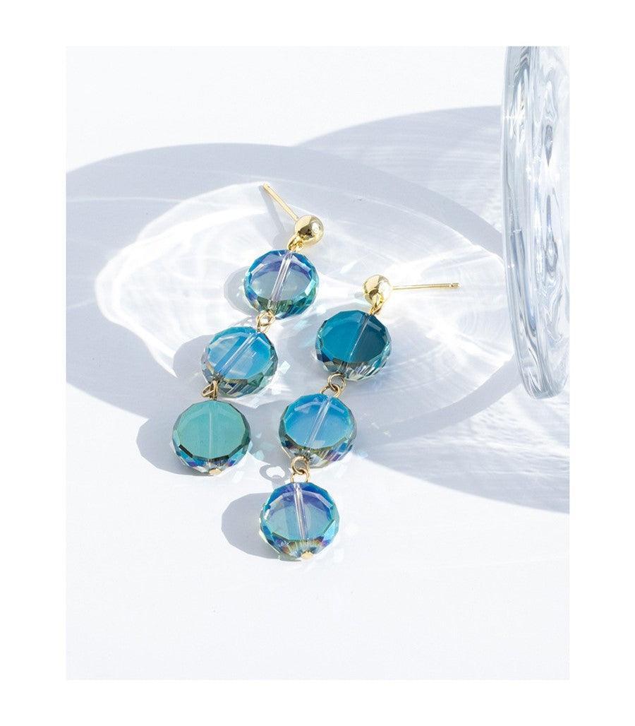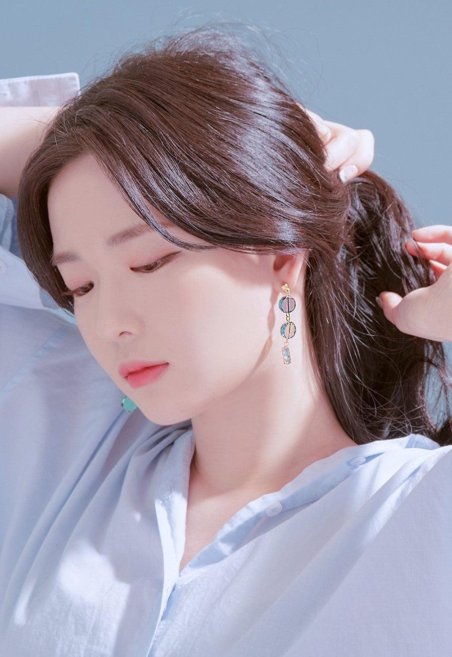 Màu: Blue, White. Chất liệu: Anti-allergic Nickel-free post, Brass, Glass, 14k Yellow gold plated, etc. Khối lượng: 8.0 Gram. Kích thước: 13 mm x 57 mm. Số lượng: 2 bông tai.