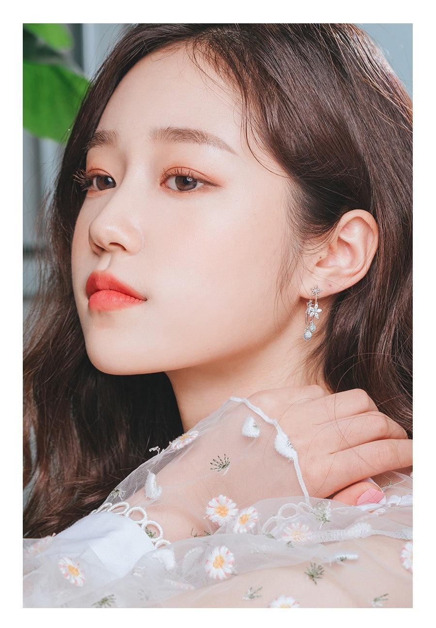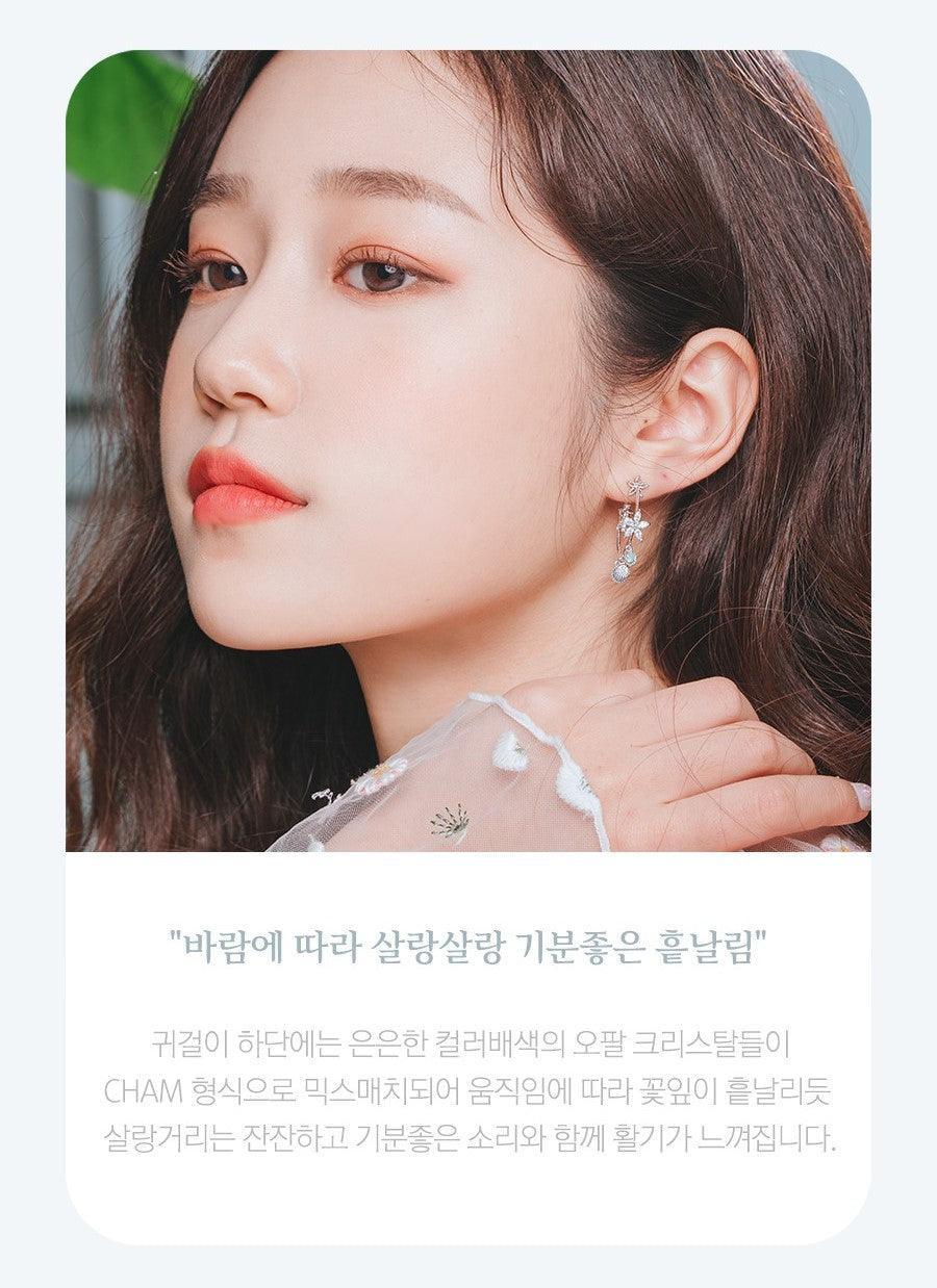 Ở dưới cùng của bông tai, các tinh thể Opal với sự phối màu tinh tế được kết hợp theo định dạng CHAM, mang đến cho bạn cảm giác tràn đầy sức sống với âm thanh êm dịu và dễ chịu khi những cánh hoa rung rinh khi chúng di chuyển. Màu: Pink, White. Chất liệu: Silver post, Rose gold plating, White gold plating, Cubic zirconia, Other stones, etc. Khối lượng: 4.0 Gram. Kích thước: approx. 22.6 mm. Số lượng: 2 bông tai.