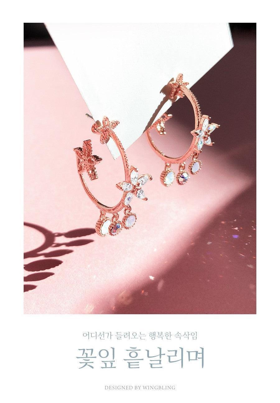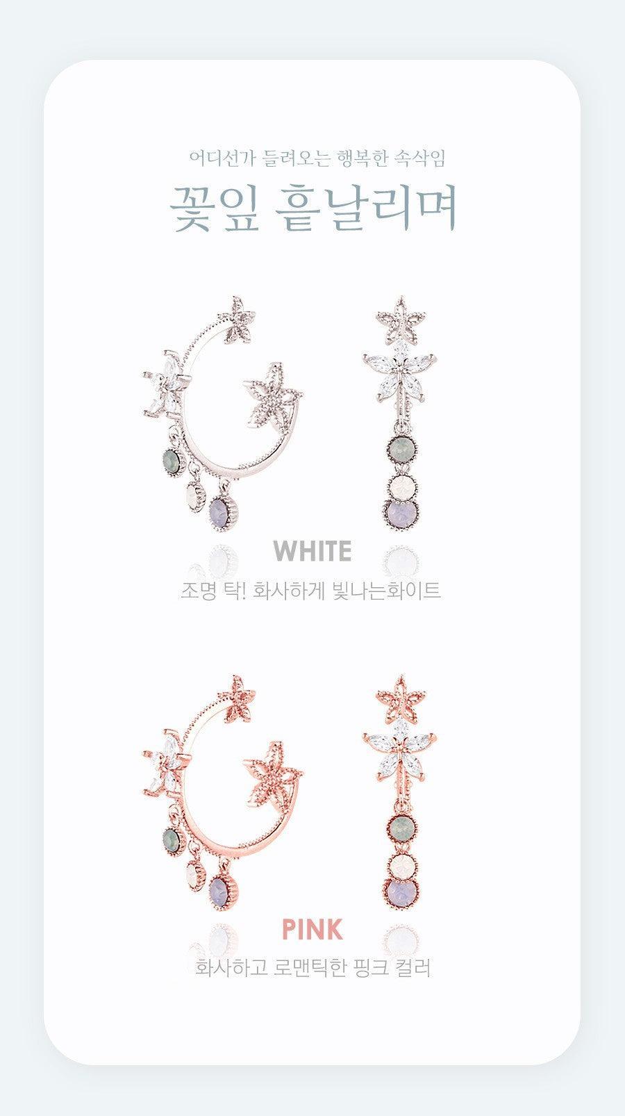 Bông Tai Wing Bling Flower Flutter Earrings một kiểu khuyên tai dạng nhẫn phá vỡ định kiến về kiểu hoa tai vòng kiềng hiện có. Để tối đa hóa vẻ đẹp tùy thuộc vào góc nhìn, họa tiết được thiết kế và kết hợp từ nhiều góc độ khác nhau trong cấu trúc kiểu vòng, và nó được thể hiện dưới nhiều góc độ khác nhau, như thể đeo hoa tai thả hoặc hoa tai nhẫn, khiến nó trở nên đáng yêu hơn.