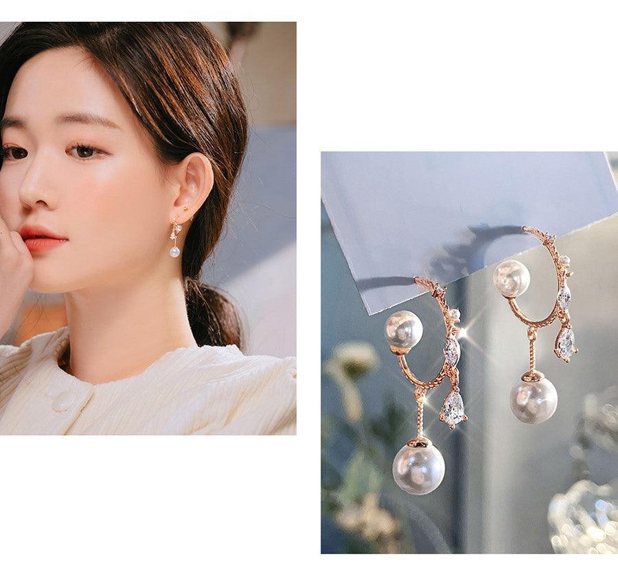 Màu: Pink, Silver. Chất liệu: 925 Silver post, Pearl, Cubic zirconia, Brass, 14k Rose gold plated, White gold plated, etc. Khối lượng: 2.1 Gram. Kích thước: 7 mm x 31 mm. Số lượng: 2 bông tai.