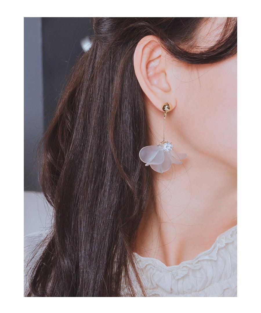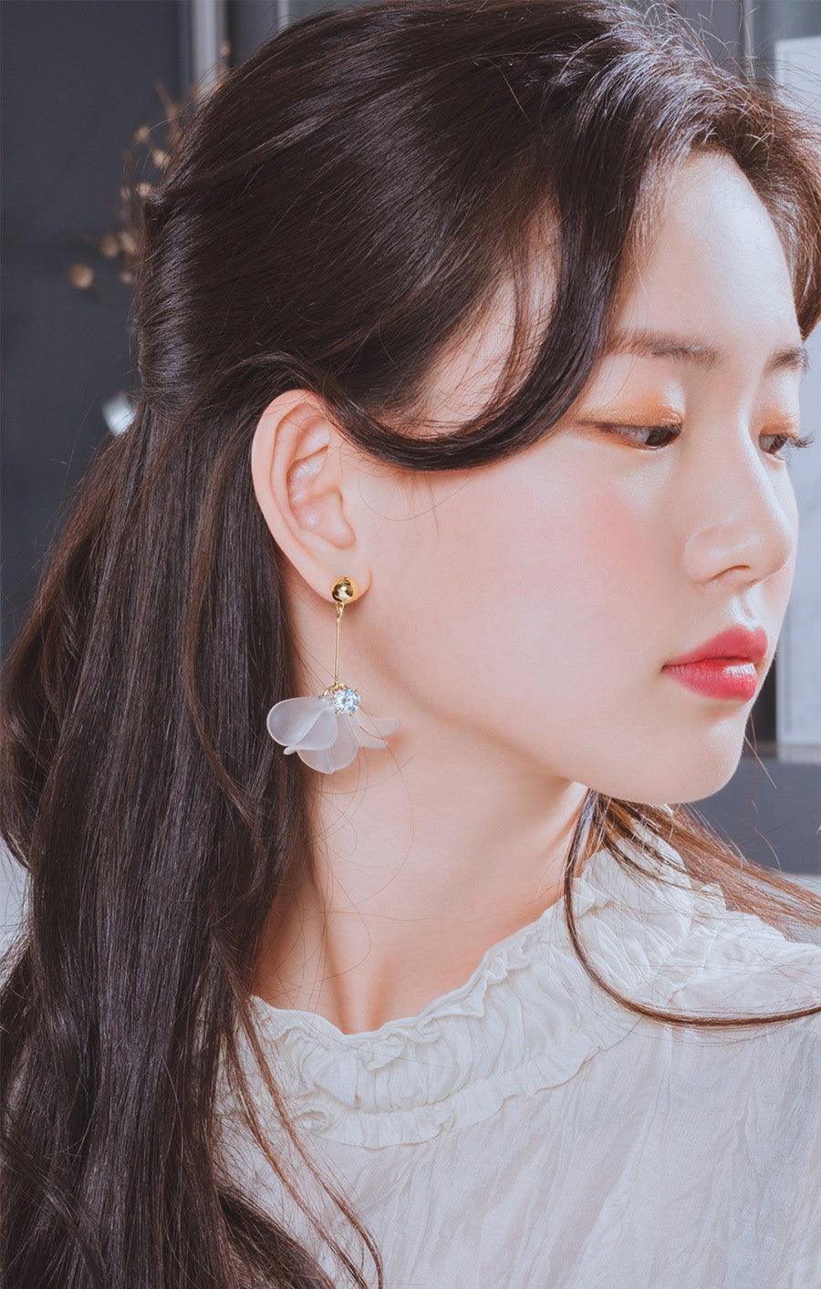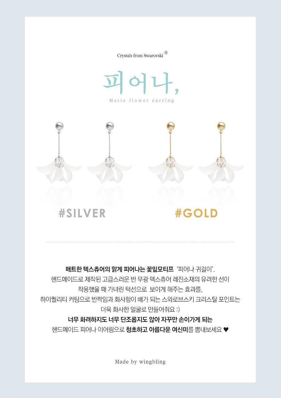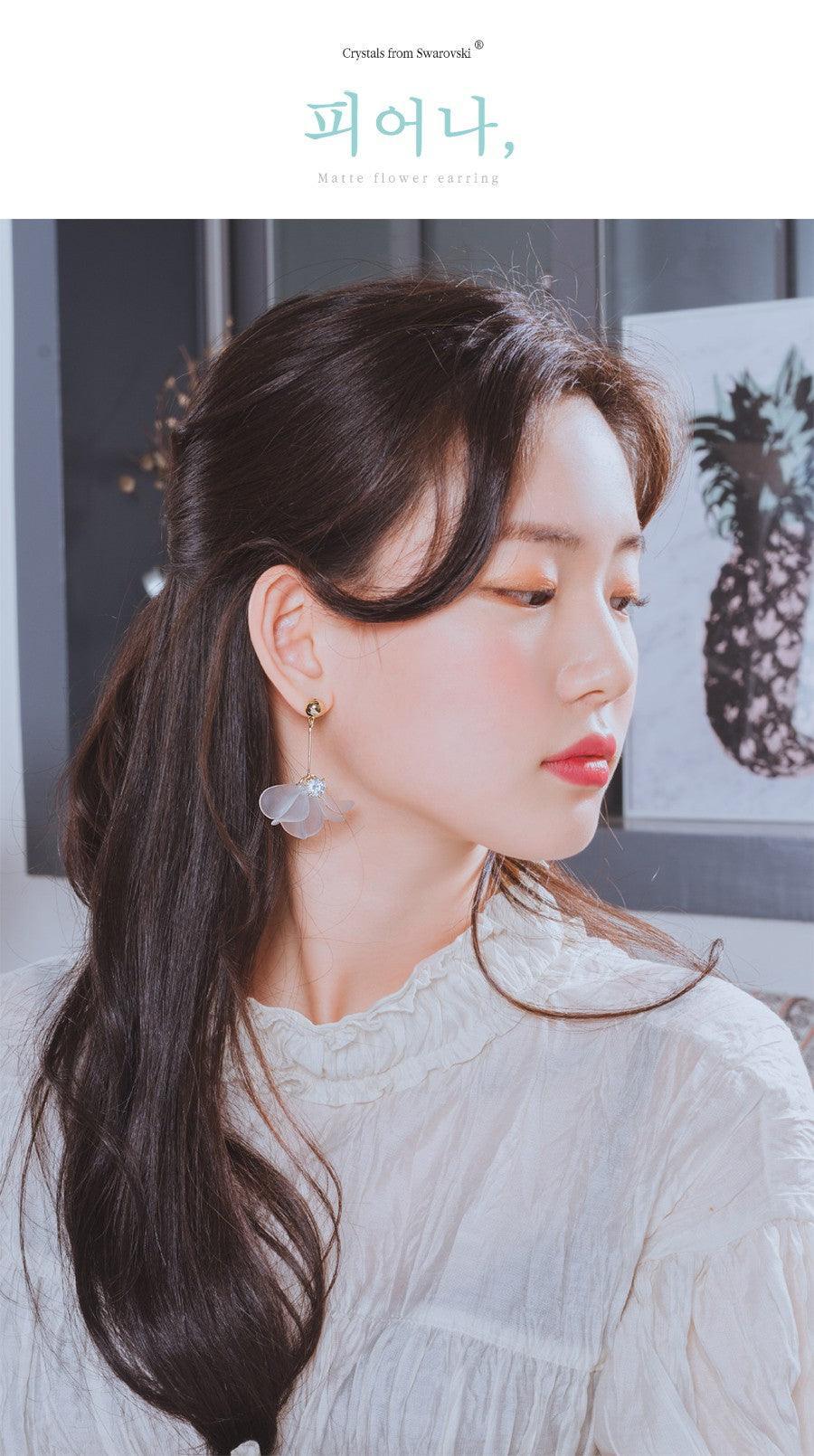 Bông Tai Wing Bling Matte Flower Earrings kết cấu mờ, họa tiết cánh hoa nở rộ trong suốt hoặc bông tai Swarovski nhân đôi sự rực rỡ với đường cắt chất lượng cao, hiệu ứng tạo đường nét cằm thanh tú khi đeo bằng chất liệu nhựa, kết cấu bán mờ sang trọng được làm thủ công. Viên pha lê cũng không quá đặc sắc nhưng cũng không quá đơn điệu.