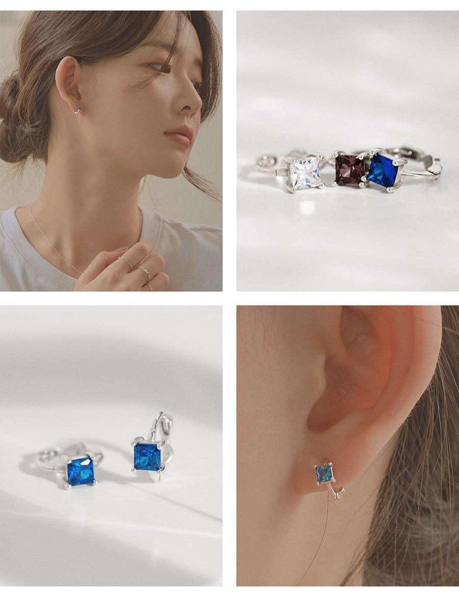 Màu: Blue, Burgundy, White. Chất liệu: 925 Silver, Unplated, CSN. Khối lượng: 1.02 Gram. Kích thước: 11 mm x 9 mm. Số lượng: 2 bông tai.