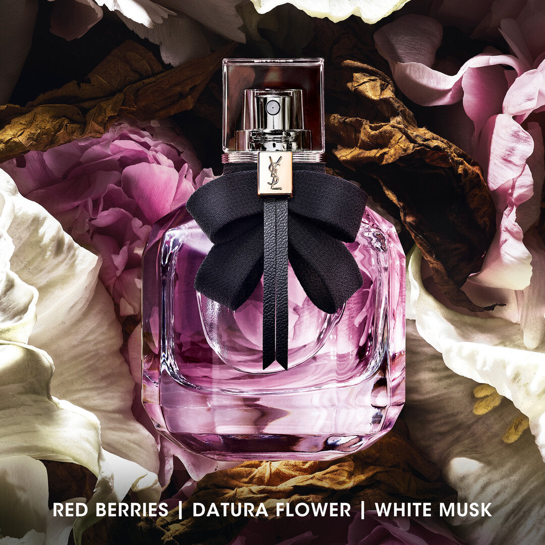 Hương thơm thứ ba trong bộ là Mon Paris Eau de Parfum, một hương thơm ngọt ngào, trái cây và hoa gợi lên cảm giác lãng mạn và đam mê. Mùi hương này hoàn hảo cho những ai thèm một mùi hương nhẹ nhàng, thoáng mát với một chút ngọt ngào. Hương đầu của quả mọng đỏ mang đến cho nó một mùi hương trái cây, gần như chua chát, tươi mát ngay lập tức. Khi lắng xuống, hoa cà độc dược xuất hiện, thêm một nét kỳ lạ và gợi cảm. Hương thơm được neo giữ bởi hương đất, gỗ của xạ hương trắng, mang lại chiều sâu và sự cân bằng.