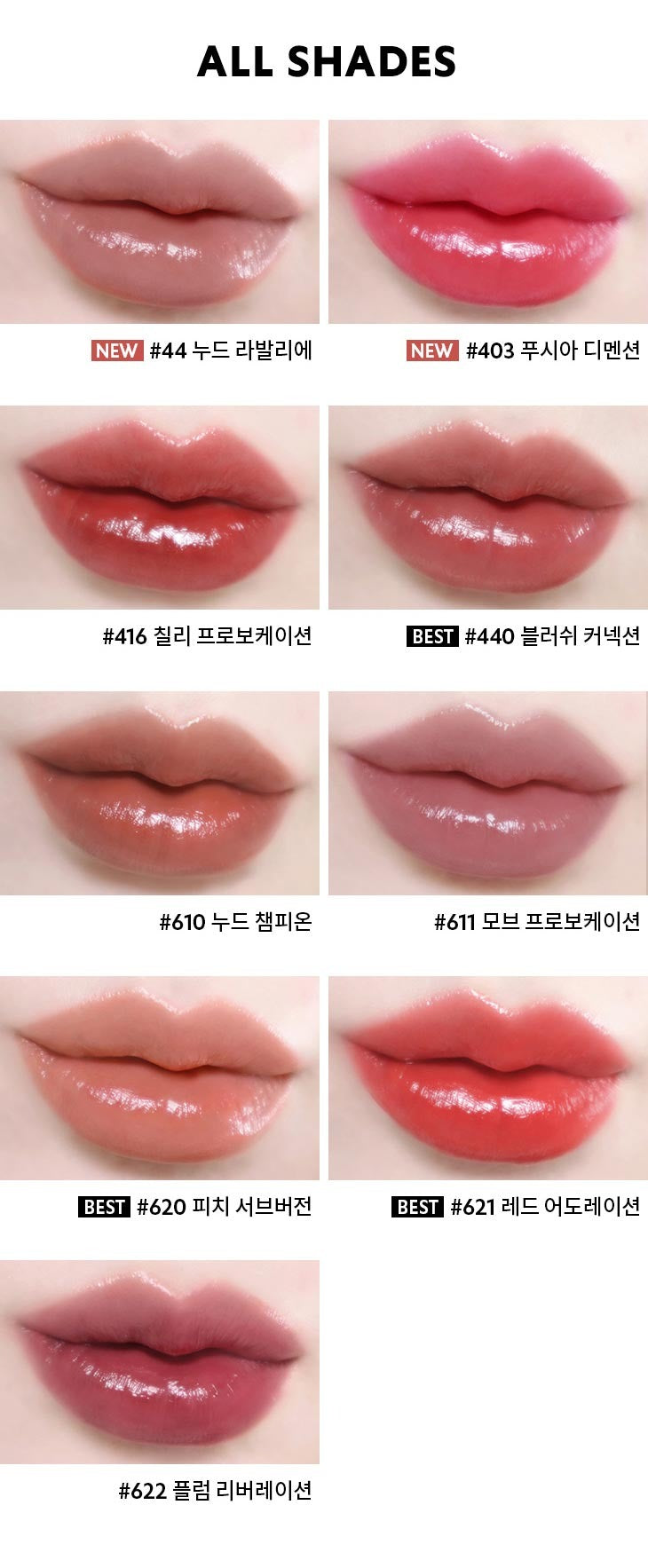 Khi thoa, chất son tan chảy nhẹ trên môi, tạo lớp màu mịn đều và bóng mượt. Dù có độ bóng cao, son không gây cảm giác nặng mà vẫn rất nhẹ và dễ chịu. Sau nhiều giờ, son vẫn giữ được độ ẩm và độ sáng bóng tự nhiên, giúp đôi môi trông đầy đặn, quyến rũ.