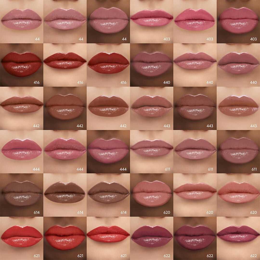 Nhờ thành phần chiết xuất thiên nhiên giàu dưỡng, son giúp duy trì độ ẩm suốt 24 giờ (theo kết quả thử nghiệm người tiêu dùng trên 142 phụ nữ). Dù mang hiệu ứng bóng, chất son không gây nặng môi hay nhờn rít. Ngược lại, đôi môi luôn được bảo vệ khỏi tình trạng khô ráp và mất nước.
