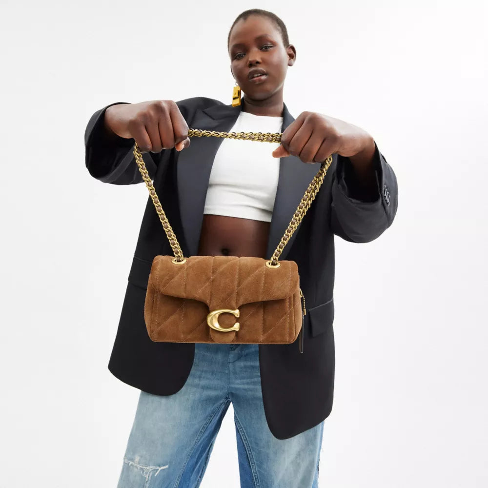 The COACH Tabby Shoulder Bag 20 with Quilting in striking Brass / Cedar is an elegant, versatile, and meticulously crafted accessory from one of the most revered luxury handbag brands. With its unique blend of suede and smooth leather, thoughtful design elements, and eye-catching details, the Tabby 20 is a standout piece for both functionality and fashion. In this review, we'll explore its construction, features, styling potential, and how to get the most out of this exquisite handbag.