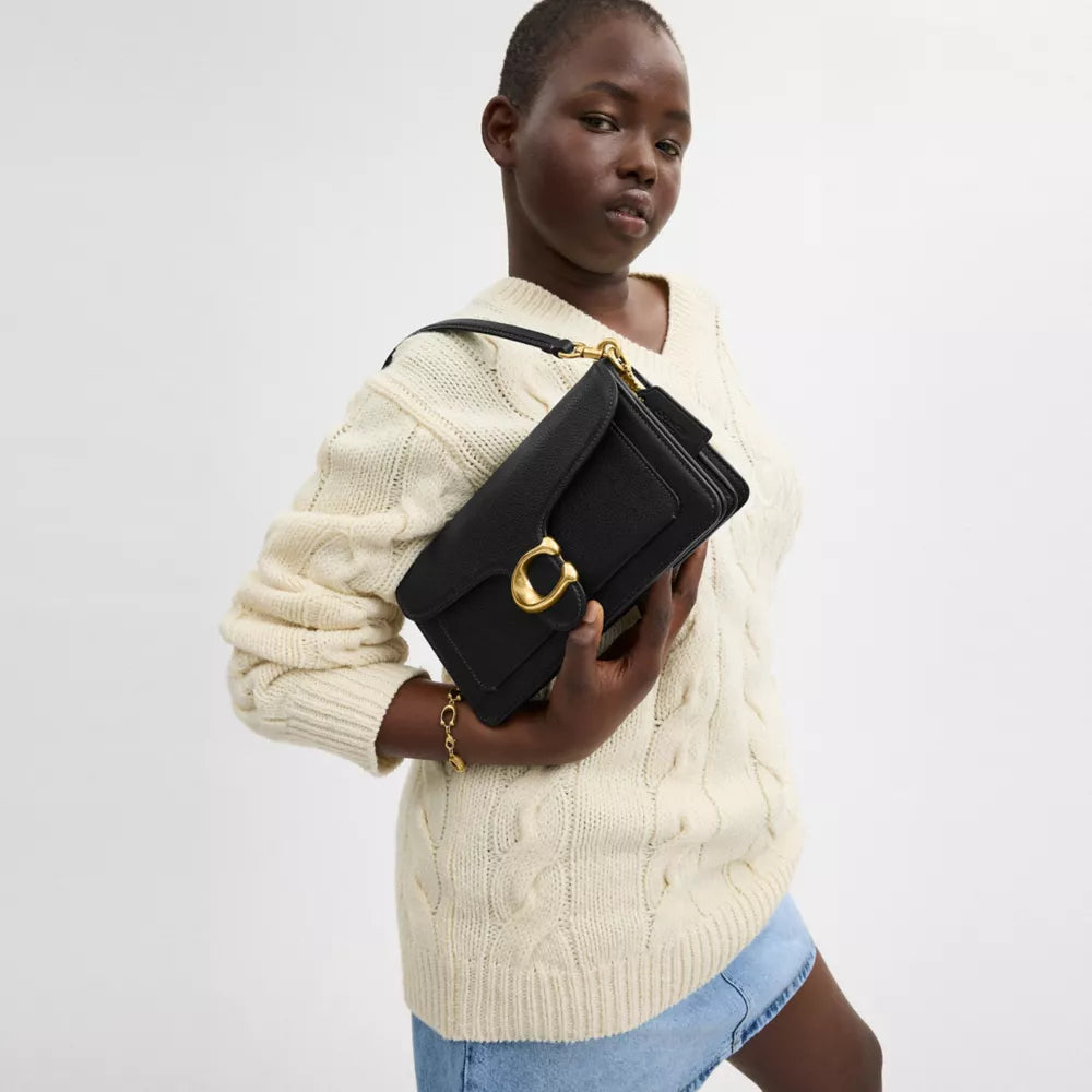 - For a casual style: Pair the Tabby 26 with a cozy sweater, jeans, and ankle boots. The crossbody strap makes it easy to go hands-free while still looking stylish. The black leather will match most casual outfits, while the brass accents add a touch of sophistication.