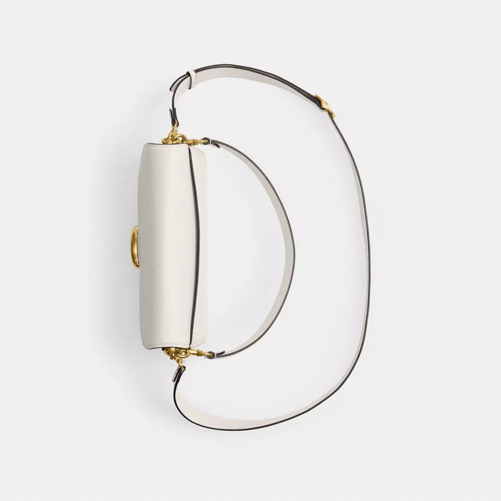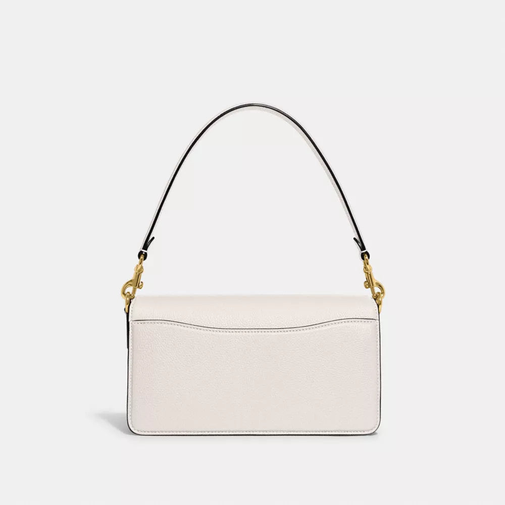 Crafted from polished pebble leather, the COACH Tabby Shoulder Bag 26 #Brass / Chalk is designed to offer both durability and elegance. The pebbled texture gives the leather a soft, luxurious finish that is both supple and resilient. Unlike smoother leather bags, which can quickly show signs of wear and tear, the pebbled texture helps to hide minor scratches and scuffs, making this bag a more practical choice for everyday use.