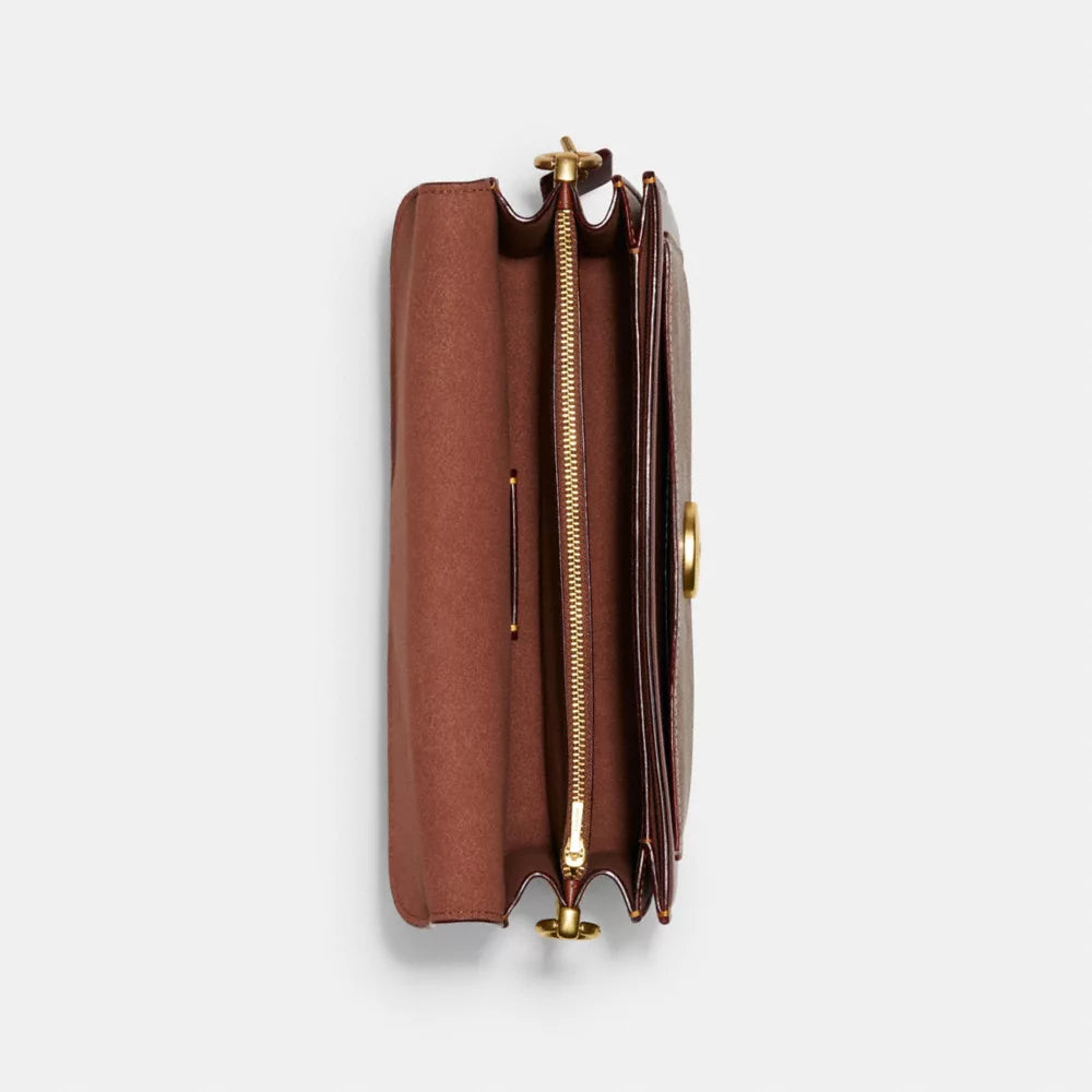 Crafted from a combination of Signature coated canvas and refined calf leather, this bag embodies modern luxury while retaining a timeless appeal. Its sleek, structured silhouette makes it versatile enough for various occasions, and its design is a clear nod to Coach's rich heritage, offering a unique blend of contemporary style with a vintage feel.