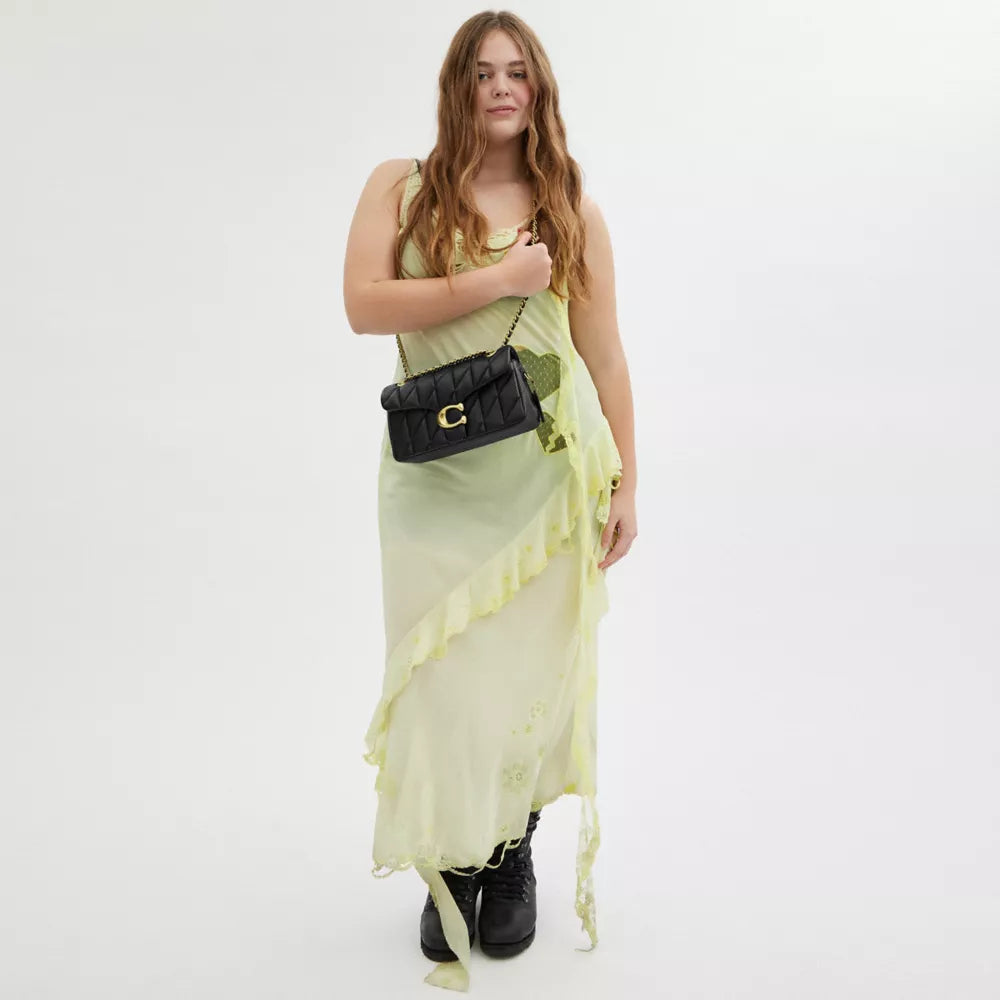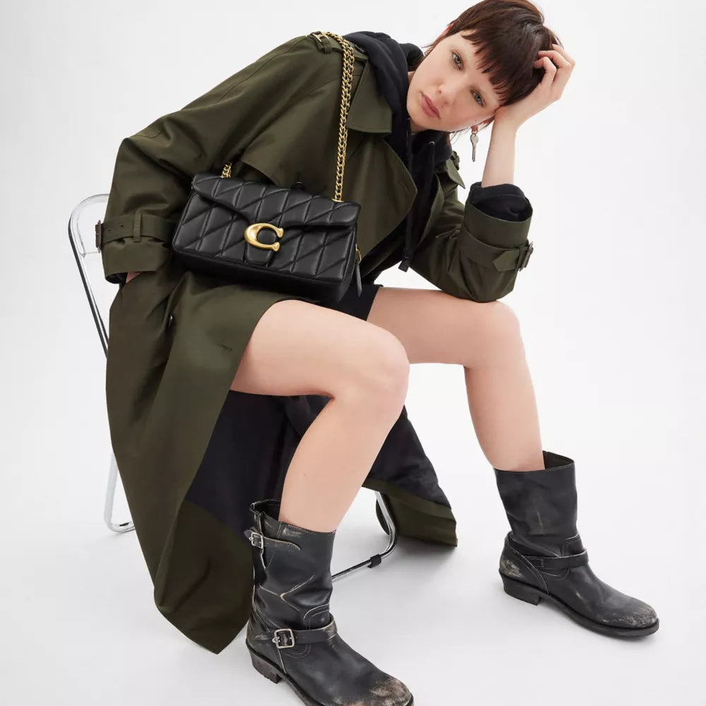 The COACH Tabby Shoulder Bag 26 with Pillow Quilting #Brass / Black is a handbag that perfectly blends modern and classic fashion styles, featuring soft nappa leather and a distinctive quilted pattern. With its smart design, practicality, and easy pairing with outfits, this is undoubtedly an excellent choice for those who appreciate luxury and refinement. Visit Kallos to experience and own this beautiful bag now!