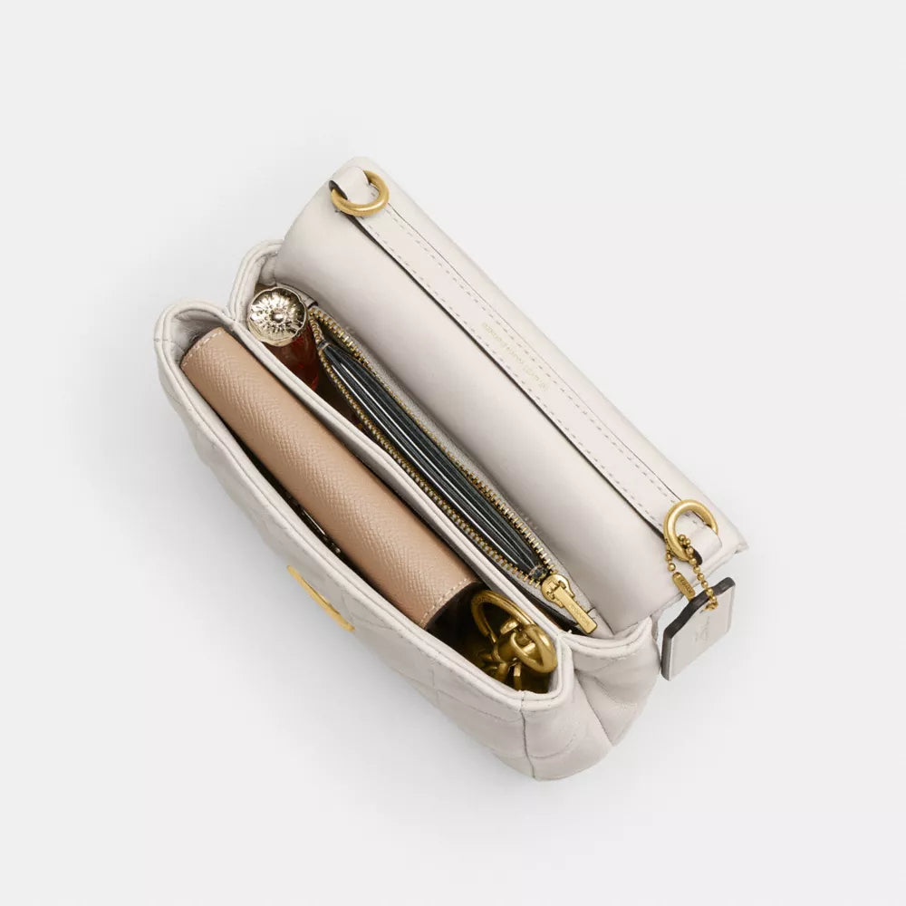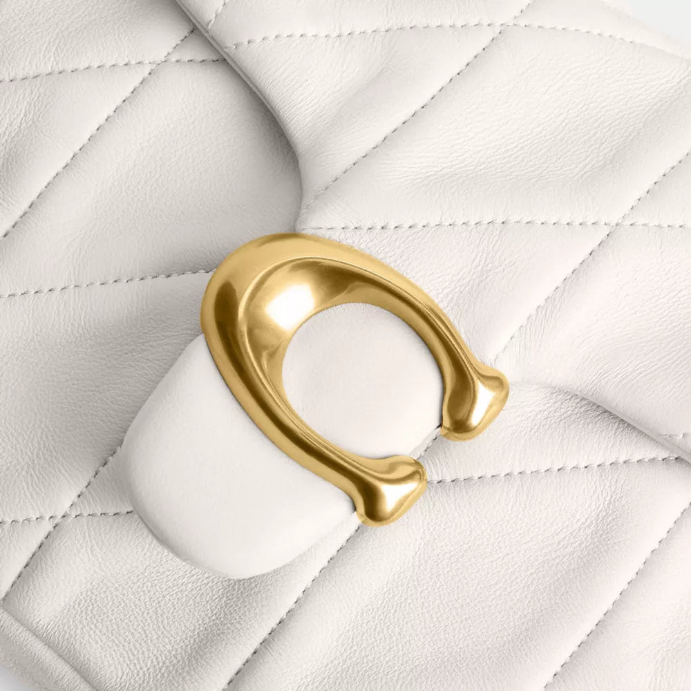 The COACH Times Square Tabby Shoulder Bag 17 with Quilting #Brass / Chalk is a sophisticated, functional, and stylish addition to any fashion-conscious individual's collection. Its premium materials, thoughtful design, and versatile features make it perfect for a variety of occasions, from everyday wear to special events. If you're seeking a compact yet practical bag that doesn't compromise on style, this Coach piece is an excellent choice.