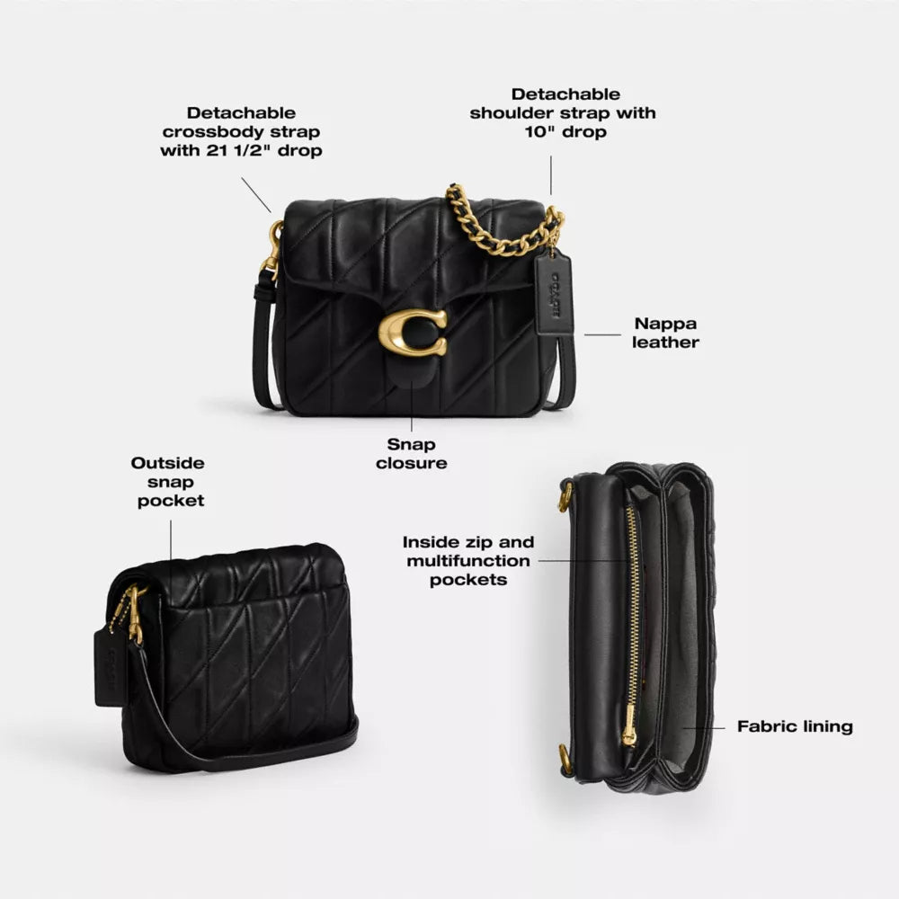 Like all Coach products, the Times Square Tabby Shoulder Bag is crafted with impeccable attention to detail. The nappa leather is soft and pliable, with a beautiful quilted pattern that adds both texture and visual appeal. The leather feels luxurious yet practical, with a quality that suggests it will age beautifully over time, acquiring a desirable patina with use. Nappa leather is also known for its durability, meaning the bag can withstand daily wear and tear without compromising its visual appeal.