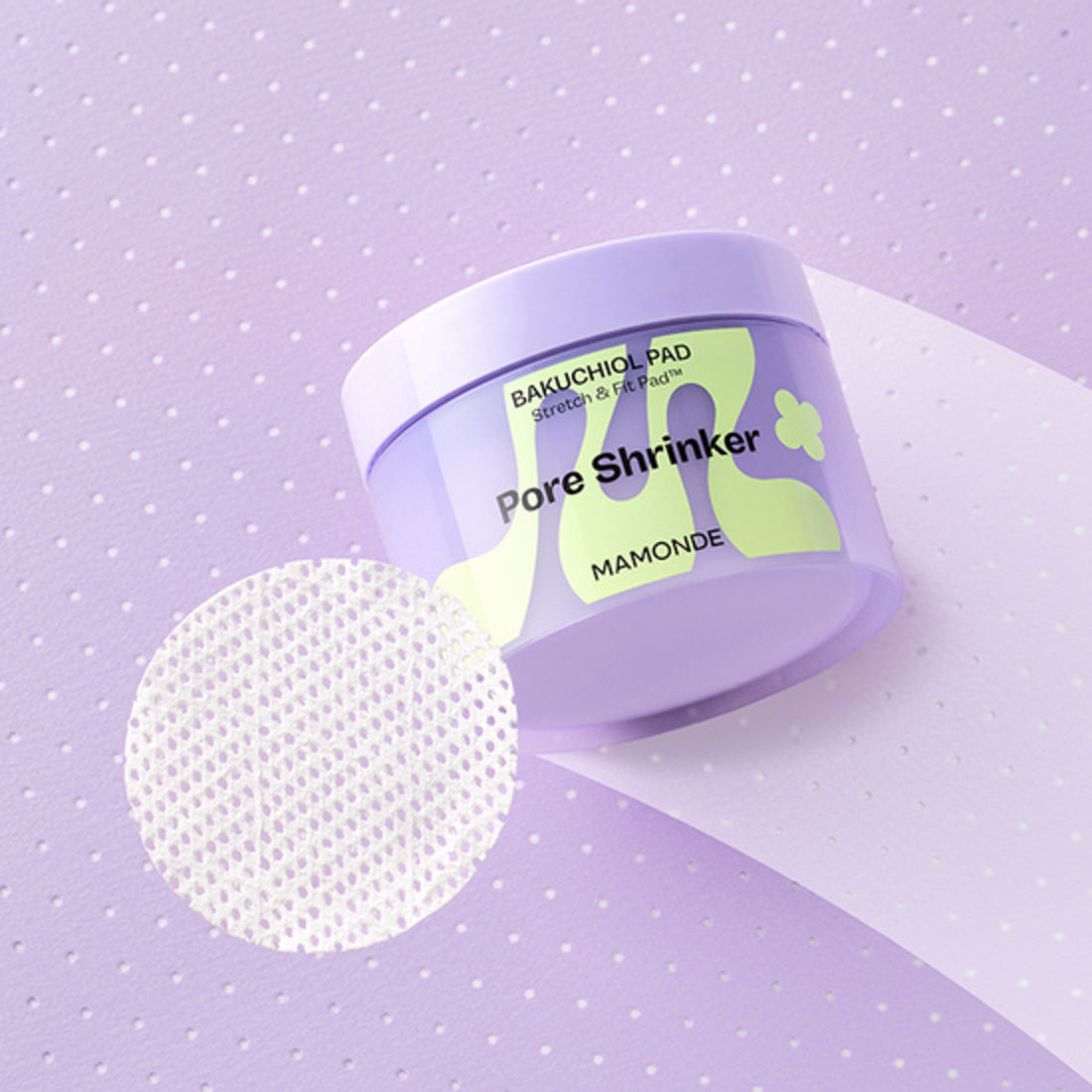 Mamonde Pore Shrinker Bakuchiol Pad reduces sebum in the butterfly zone pores and is known as a highly adhesive, stretchable pad that cleanses by wiping.