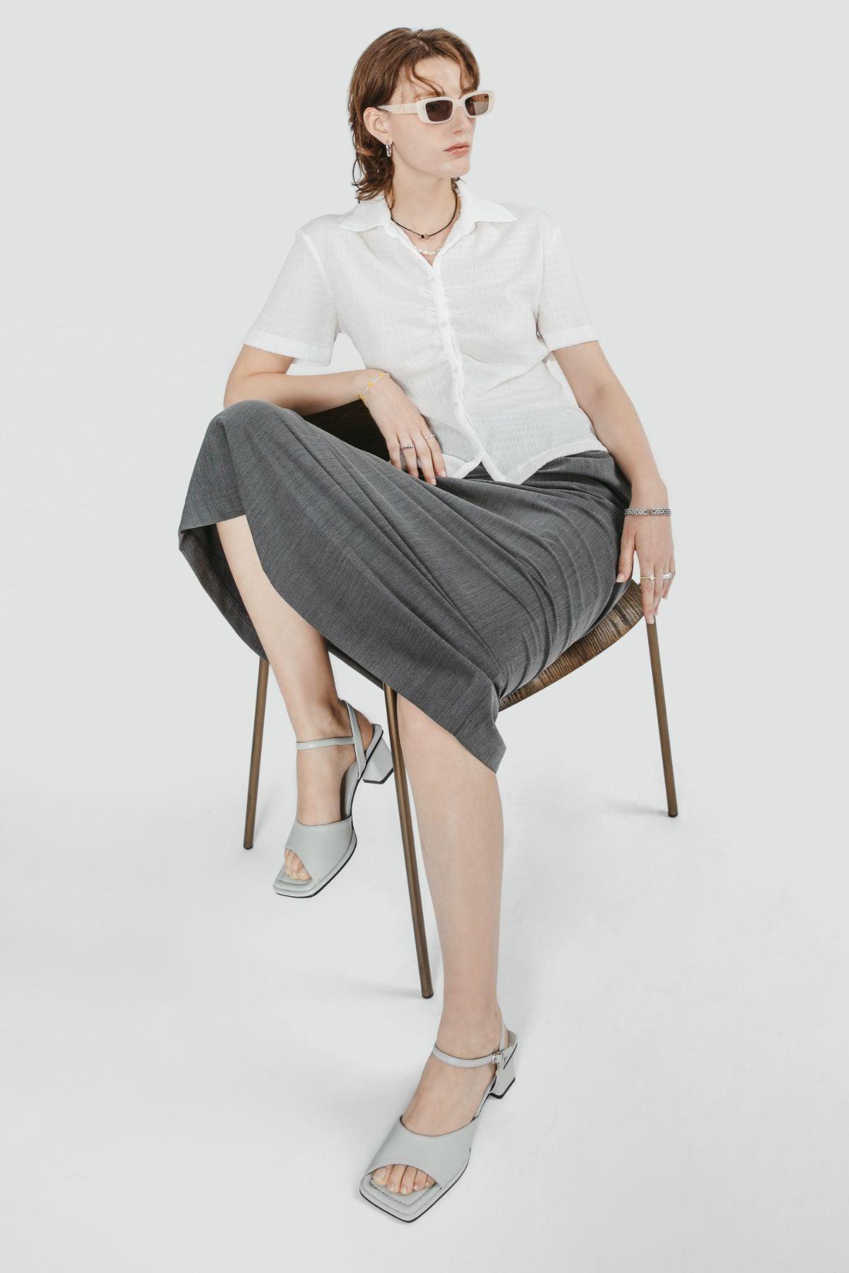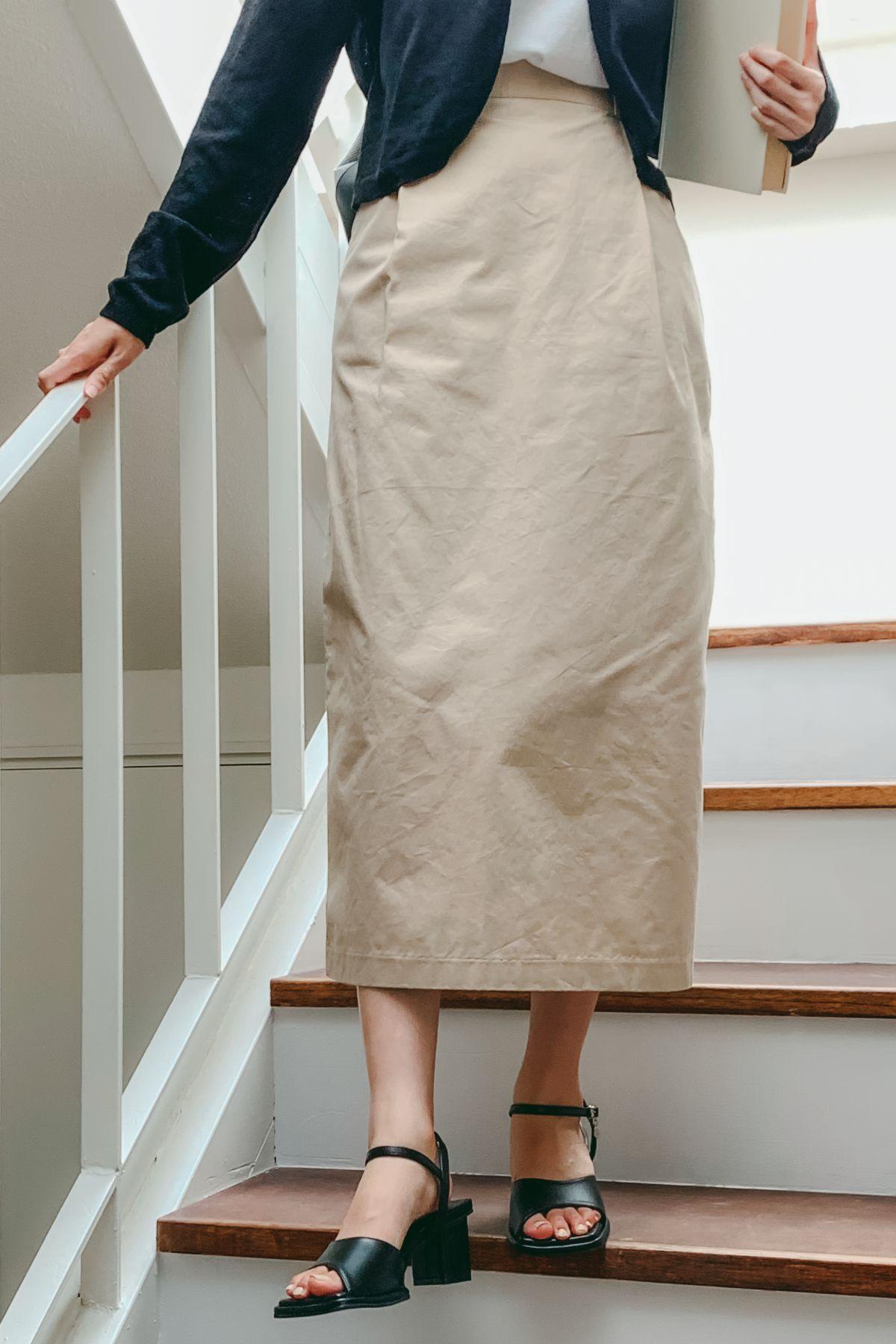 The elegance of a curve that wraps around the foot and simple colors complement any style. The square heel provides firm grip and stable walking. Because it fits my ankle size, enjoy walking in the summer!