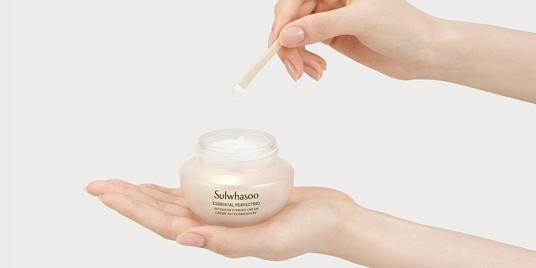 Kem Dưỡng Sulwhasoo Essential Perfecting Intensive Firming Cream chứa dưỡng chất tinh khiết được thu thập bằng cách khử trùng cây bạch chỉ và cnidium trong 18 giờ, và dầu pha trộn ba lần kết hợp hạt thông giàu axit béo không bão hòa, hạt hoa anh thảo và dầu hạt hướng dương theo tỷ lệ vàng để nuôi dưỡng và giữ ẩm cho da.