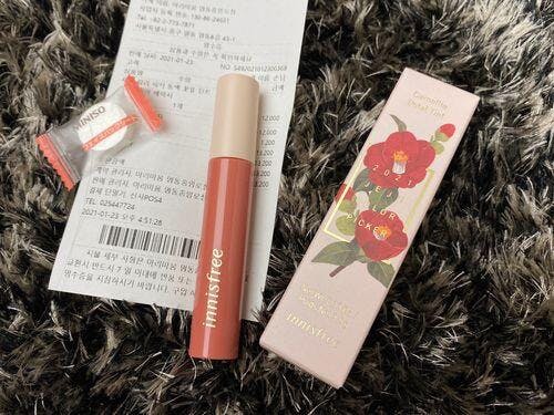 Son Innisfree Camellia Petal Tint mang sắc màu cánh hoa trà Camellia với kết cấu pha trộn nhẹ nhàng tạo độ mờ mềm mại mà không tạo rãnh môi.