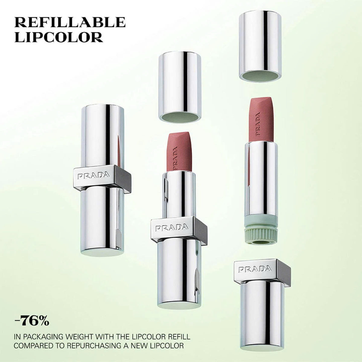 Cơ chế này giúp tiết kiệm chi phí, giảm 76% trọng lượng bao bì so với việc mua một thỏi son mới hoàn toàn. Đây là bước đi bền vững và thân thiện với môi trường, thể hiện triết lý thời trang xanh mà PRADA đang theo đuổi.
